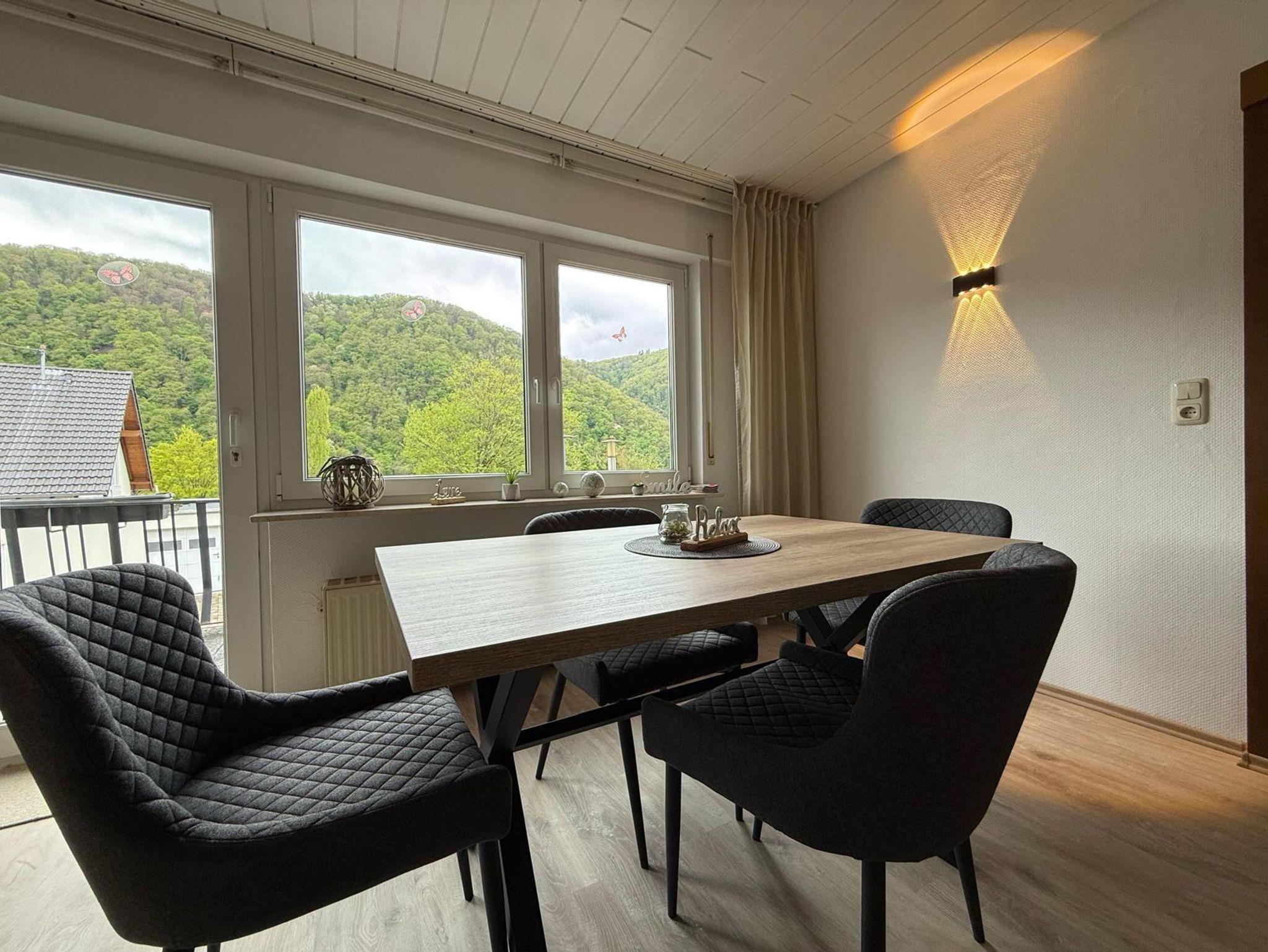 Ein besonderes Highlight ist die große, sonnige Terrasse: Genießen Sie hier morgens Ihren Kaffee mit Blick auf die Baumwipfel oder lassen Sie den Tag bei einem Glas Wein mit Aussicht auf die Wälder der Umgebung ausklingen.