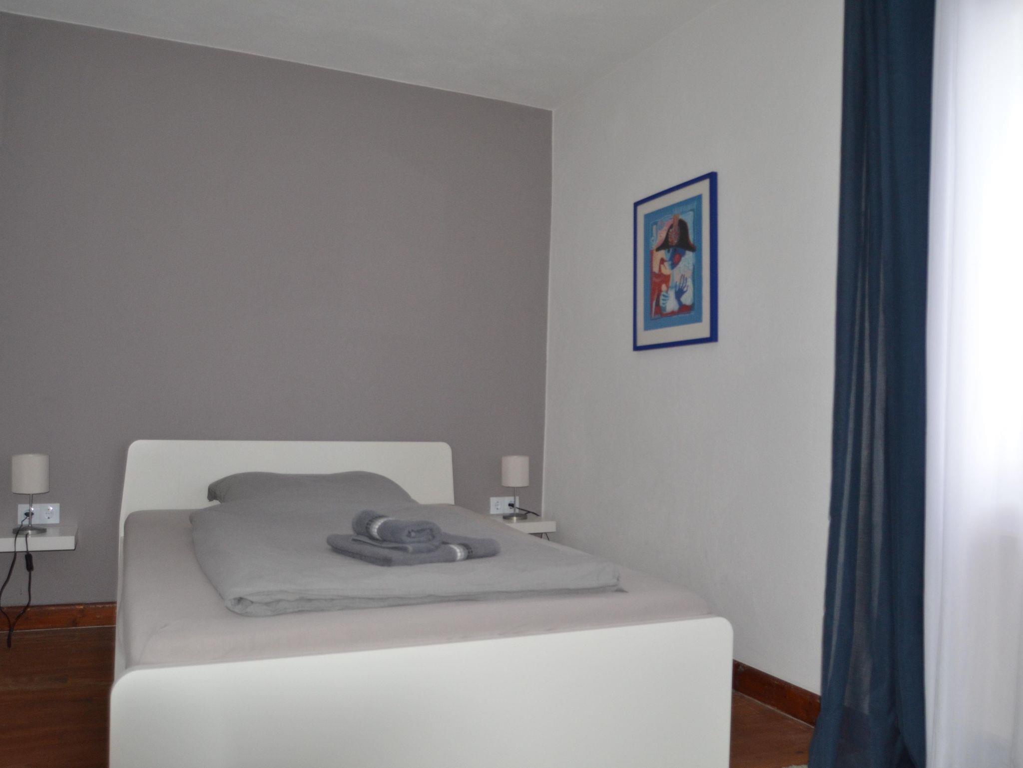 Im EG steht ein weiteres, modern eingerichtetes Schlafzimmer mit Einzelbett 1,40 m x 2,00 m zur Verfügung. TV mit Streaming Dienst ist möglich.