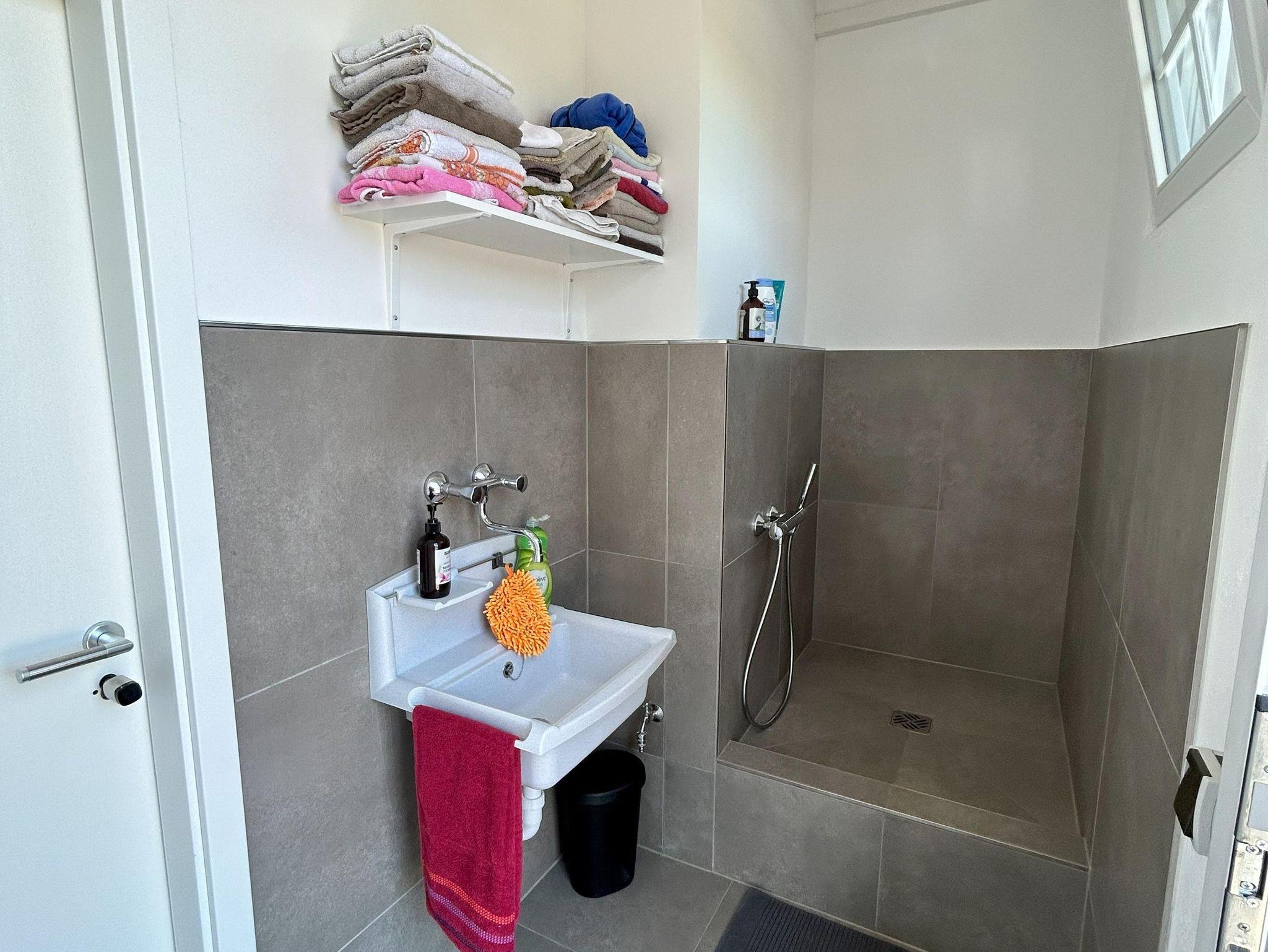 Ebenso steht eine Hundedusche mit Warmwasser und Trockentücher zur Verfügung.