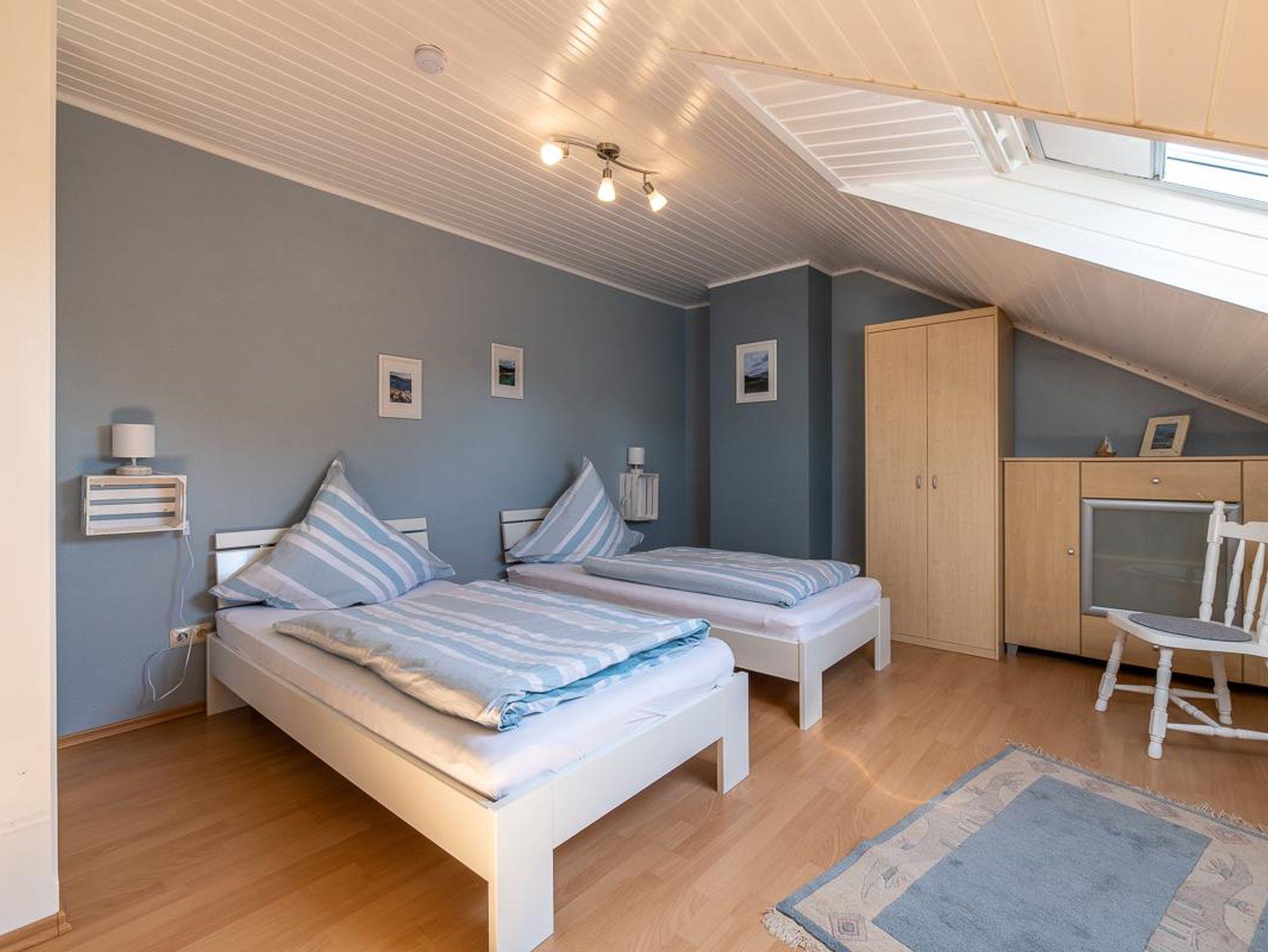 Die geräumige, modern ausgestatte Ferienwohnung hat eine Wohnfläche von 80 qm. Im hellen, offenen Wohnbereich befindet sich ein Wohnzimmer mit SAT-TV, eine Essecke und eine komplett ausgestattete Küche mit Spülmaschine, Mikrowelle, Ceranfeld und Backofen. Zwei getrennte Schlafzimmer mit einem Doppelbett und 2 Einzelbetten bieten komfortable Schlafplätze für 4 Personen. Im geräumigen Bad befindet sich ein WC, Waschbecken, Dusche, Badewanne und eine Waschmaschine. Es steht ein Bügelbrett, Bügeleisen, Staubsauger, kostenloses WLAN, bei Bedarf 1 Kinderbett und ein Kinderhochstuhl zur Verfügung.