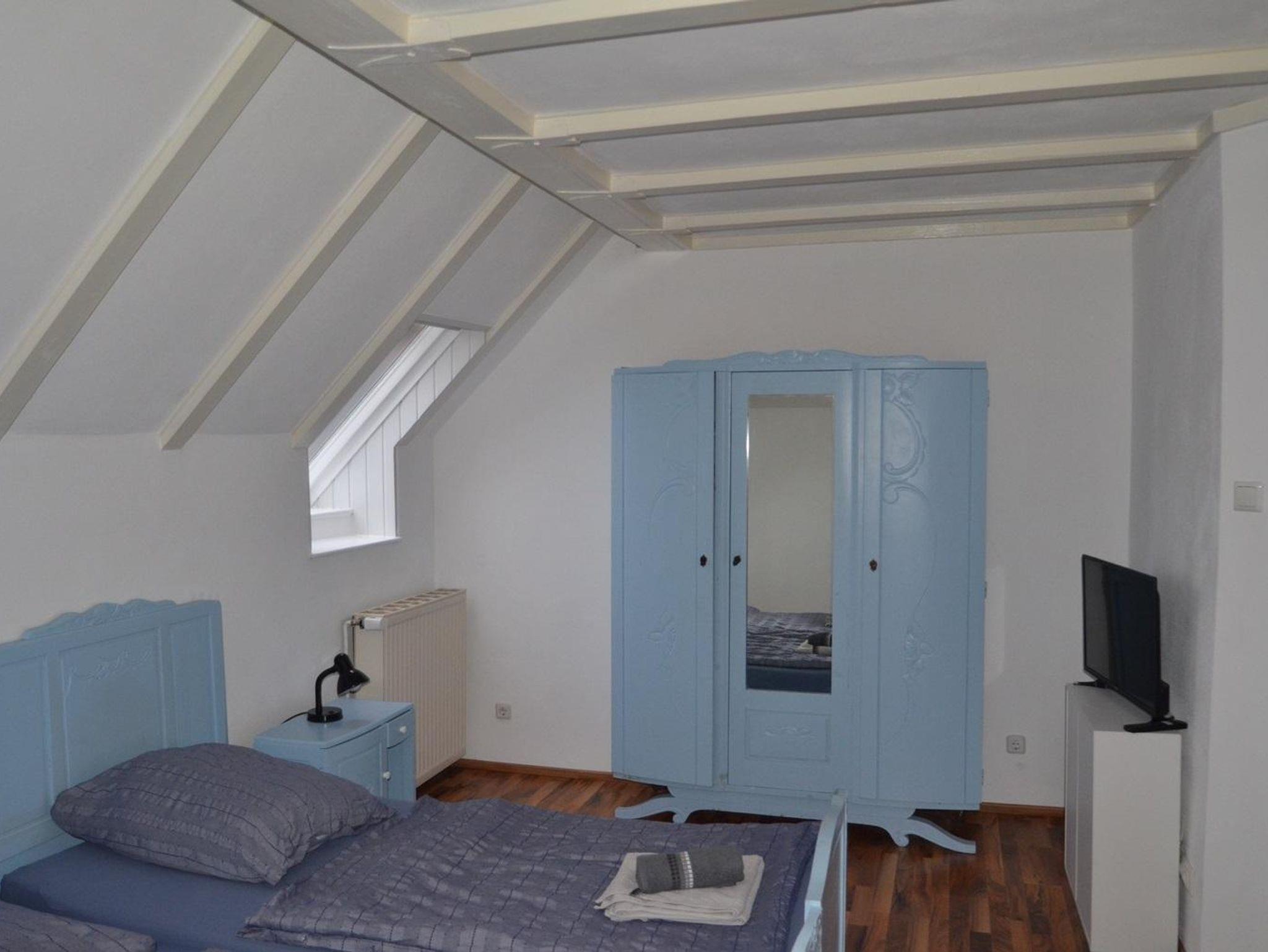 Das Obergeschoss erreichen Sie über eine Naturholztreppe. Hier fühlen Sie sich im großzügigen Schlafzimmer mit Doppelbett, Kleiderschrank, Kommode, Beistellsofa und Flachbildschirm gleich sehr wohl. Die Möbel und Wände sind in hellen, freundlichen Wohlfühlfarben gehalten. TV mit Streaming Dienst ist vorhanden.
