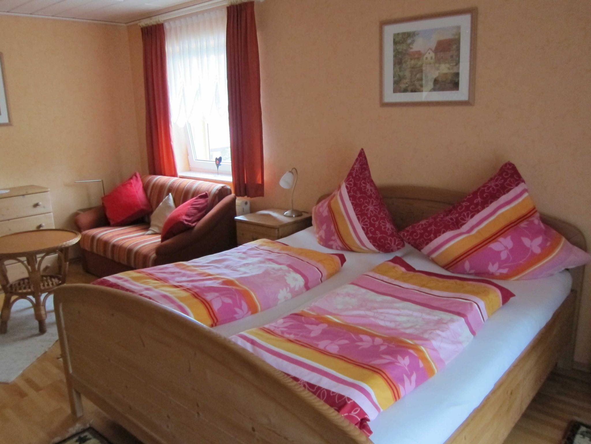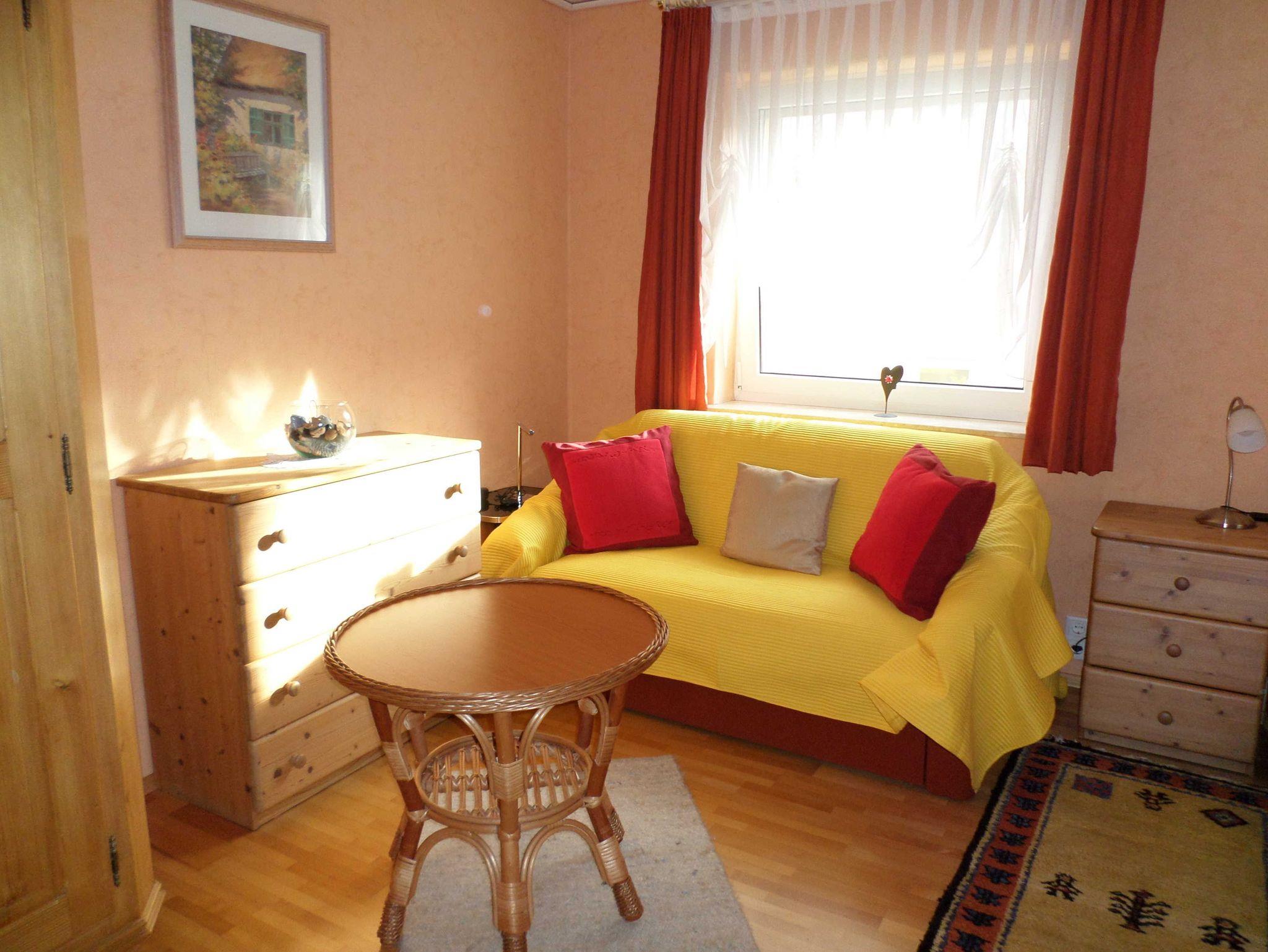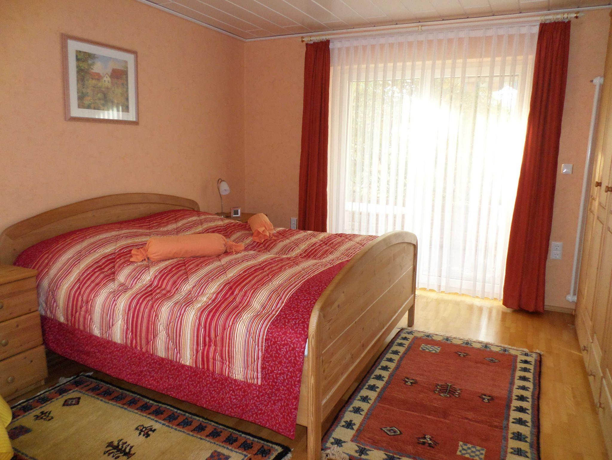 Im Schlafzimmer, mit Massivholzmöbeln hochwertig ausgestattet, werden Sie wunderbar schlafen. Ideal ist unsere Wohnung für 2 Personen, eine Belegung mit bis zu 3 Erwachsenen oder 2 Erwachsenen und 2 Kindern ist möglich. Hierzu beraten wir Sie gerne.