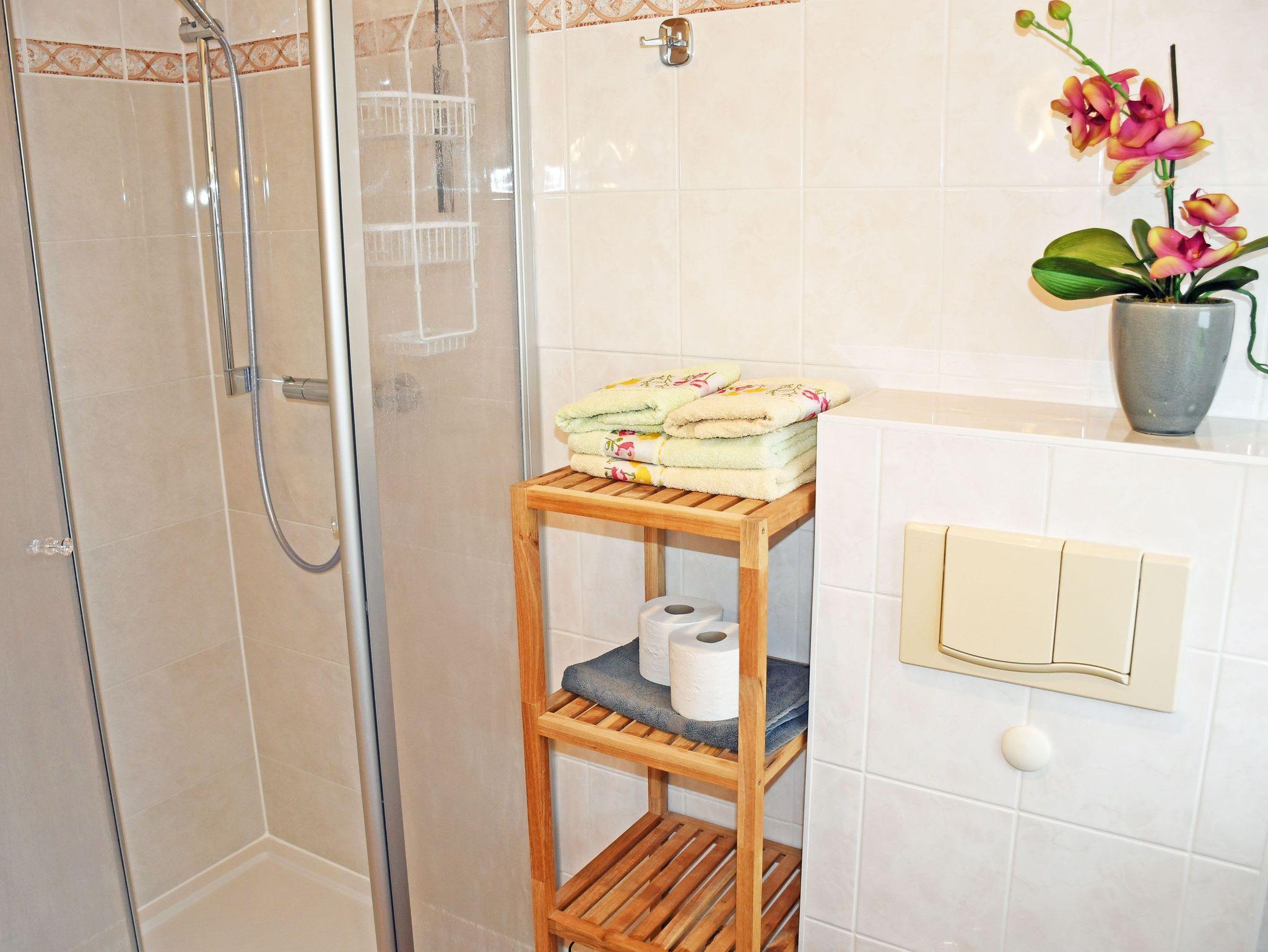 Auf der vor den Wohnungen liegenden Sonnenterrasse mit Gartenmöbeln können Sie die Sonne genießen oder bei einem Gläschen Wein entspannen. Die moderne Küchenzeile ist mit einem Cerankochfeld, Abzugshaube, Backofen, Wasserkocher, Kaffeemaschine, Toaster und Kühlschrank komplett ausgestattet. Das Schlafzimmer ist mit einem bequemen Doppelbett, Nachttischen und Leselampen sowie einem Kleiderschrank ausgestattet. Ein Kinderreisebett und Hochstuhl können auf Wunsch gern bereitgestellt werden. Auf Wunsch sind gegen Aufpreis bei Ihrer Anreise die Betten mir Bettwäsche bezogen und es liegen frische Handtücher bereit, bitte dann mitbuchen! Das moderne und helle Bad ist mit Dusche, WC, Fön und Waschtisch ausgestattet und verfügt über Tageslicht.