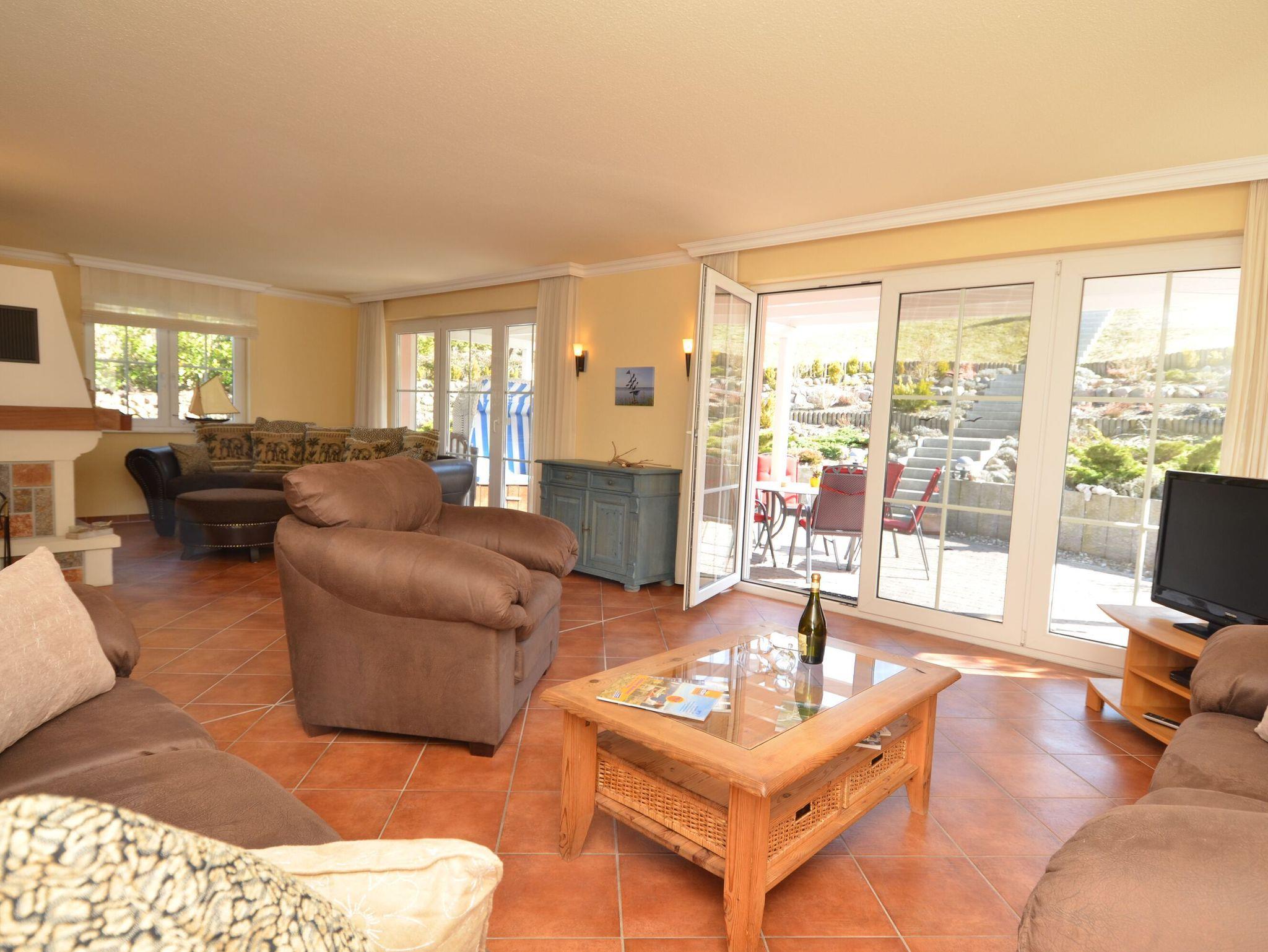 Vom Eingangsbereich aus betreten Sie durch den großen Flur den komfortabel ausgestatteten Wohnbereich, der auf ca. 30 m² mit einer schönen Couchecke, dem Flachbild-TV und einer Mini-Stereoanlage zum Entspannen einlädt. Die großzügige Relaxcouch vor dem offenen Kamin ermöglicht kuschelige Stunden vor dem prasselnden Kaminfeuer.
