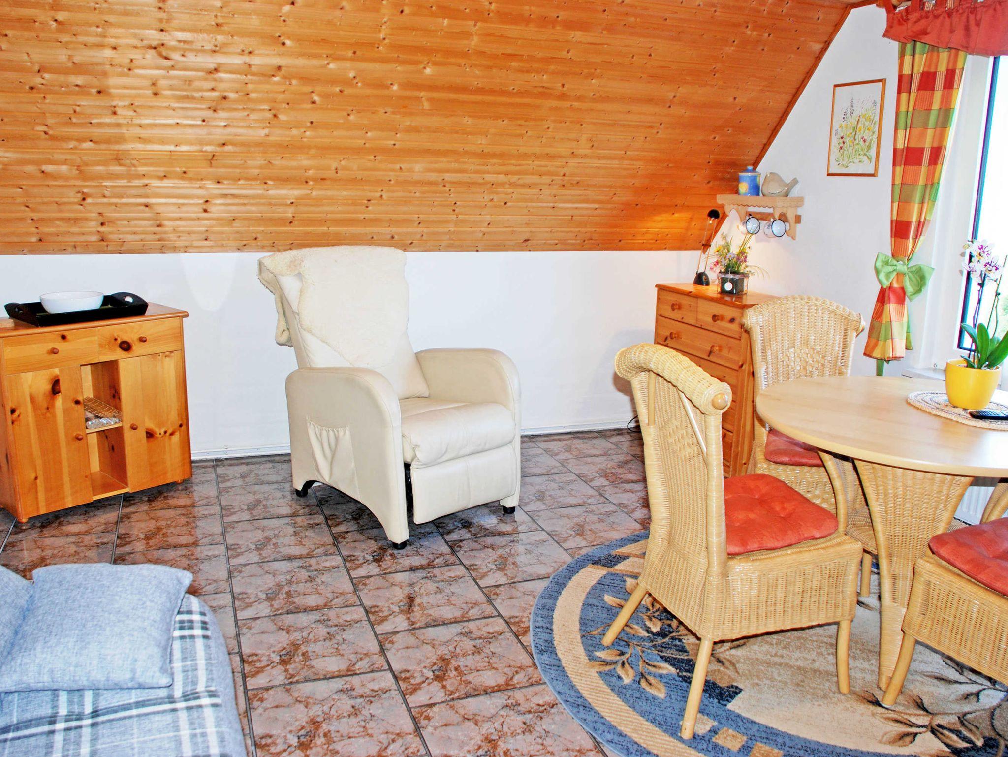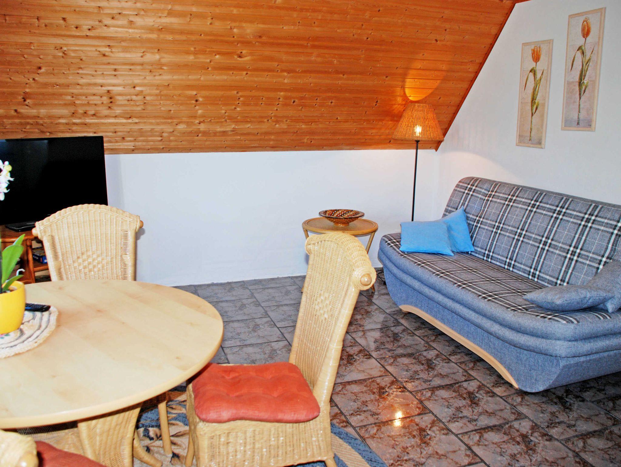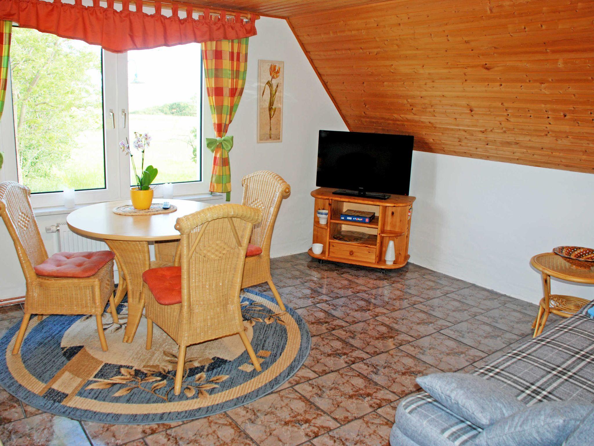 Die 2017 komplett neu eingerichtete Ferienwohnung Mönchgut im Obergeschoss des Appartementhauses und verfügt über einen separaten Eingang. Sie ist ca. 35 qm groß und bietet Platz für maximal 2 Erwachsene . Die Feriienwohnung liebevoll und modern eingerichtet und bietet ein WLAN-Internetzugang. Im Wohnraum stehen eine Couch, ein modernes Flachbild-TV-Gerät und Radio sowie ein Esstisch mit Stühlen. Aus dem Zimmer haben Sie einen schönen Ausblick über die Hagensche Wiek und die Zickerschen Alpen. Die Couch kann bei Bedarf für ein Kind bis 16 Jahre aufgebettet werden. Das Schlafzimmer (über den Flur erreichbar) verfügt über ein bequemes Doppelbett, mit Nachttischen und Leselampen sowie einen Kleiderschrank.