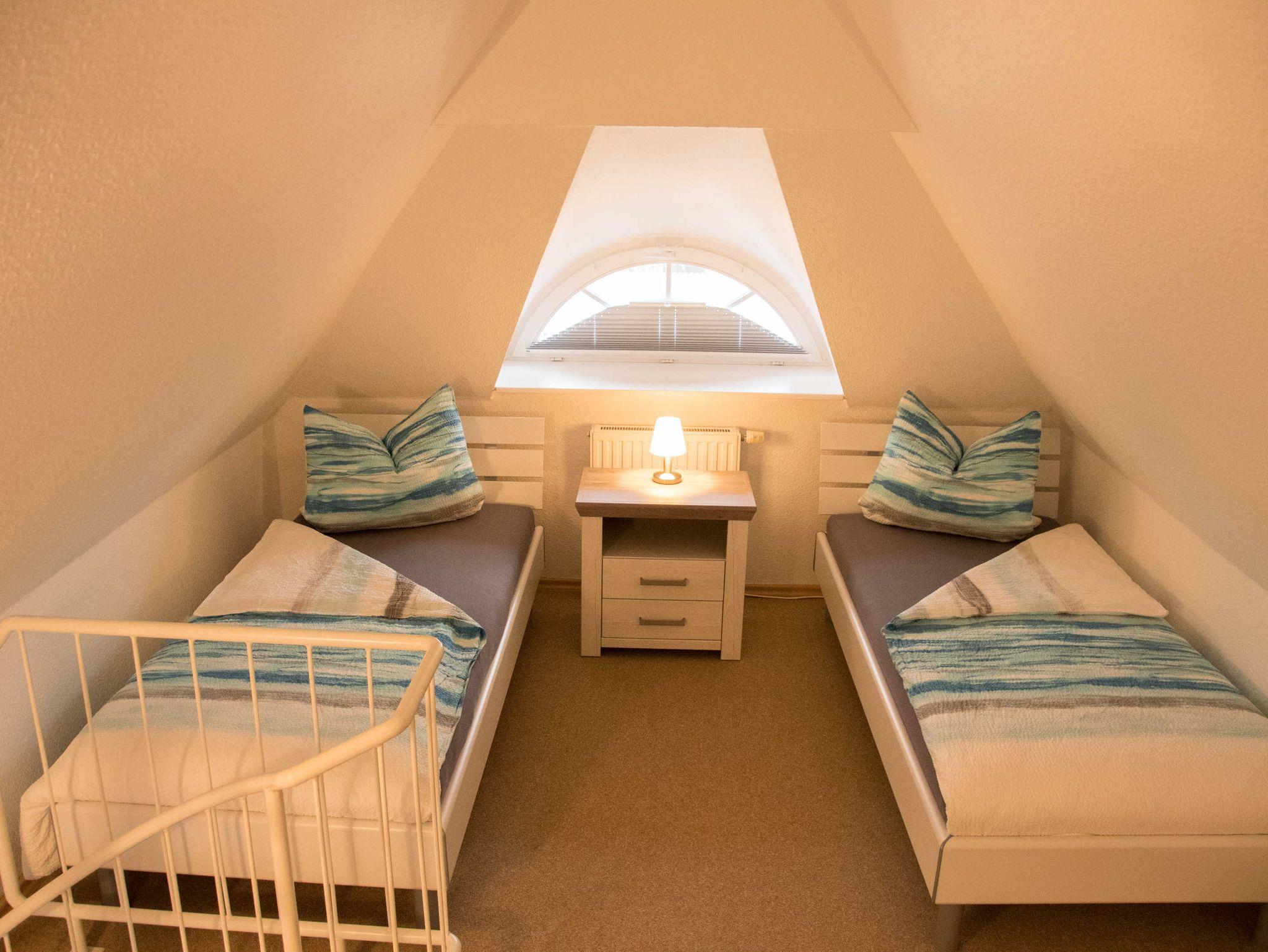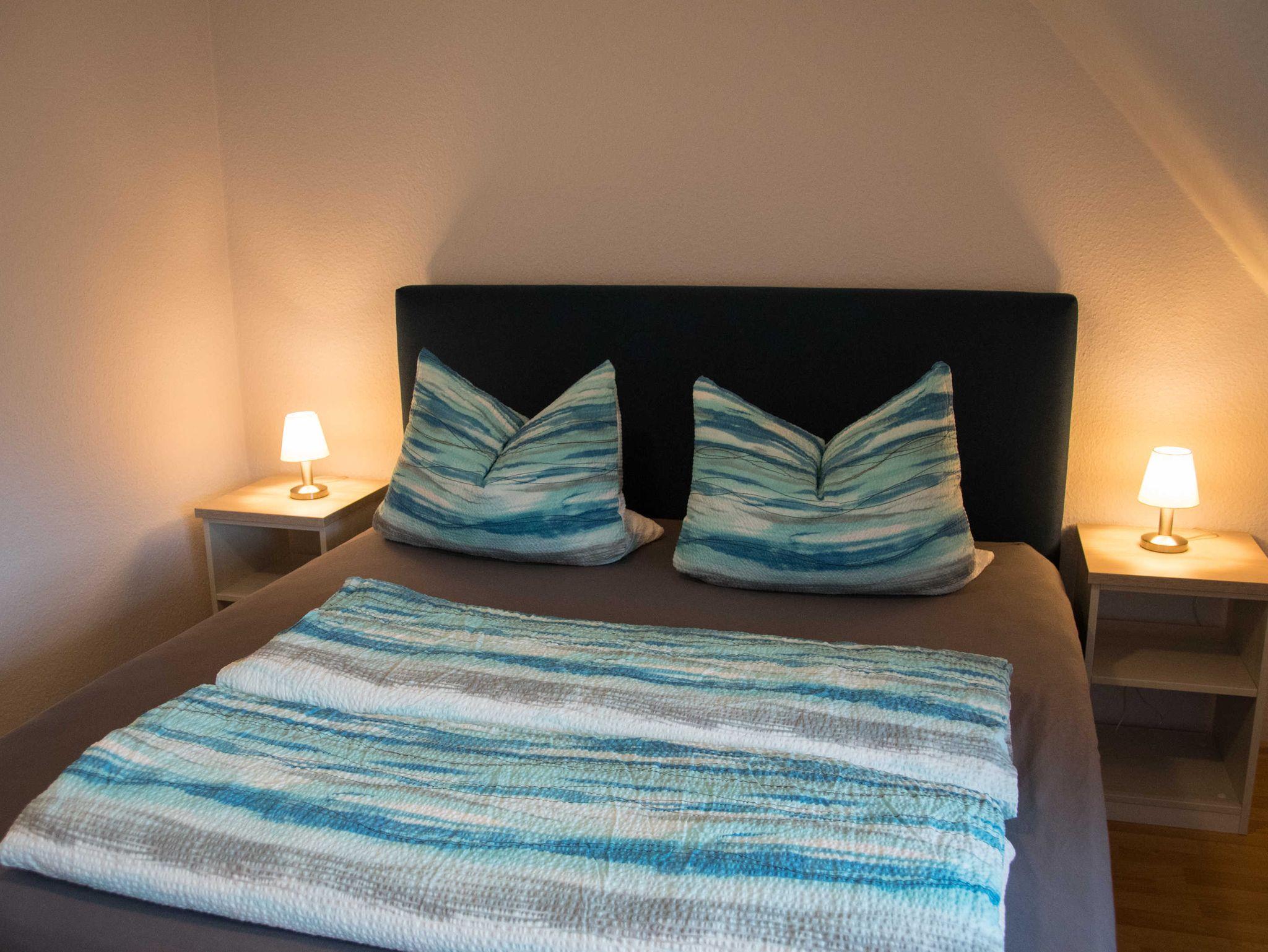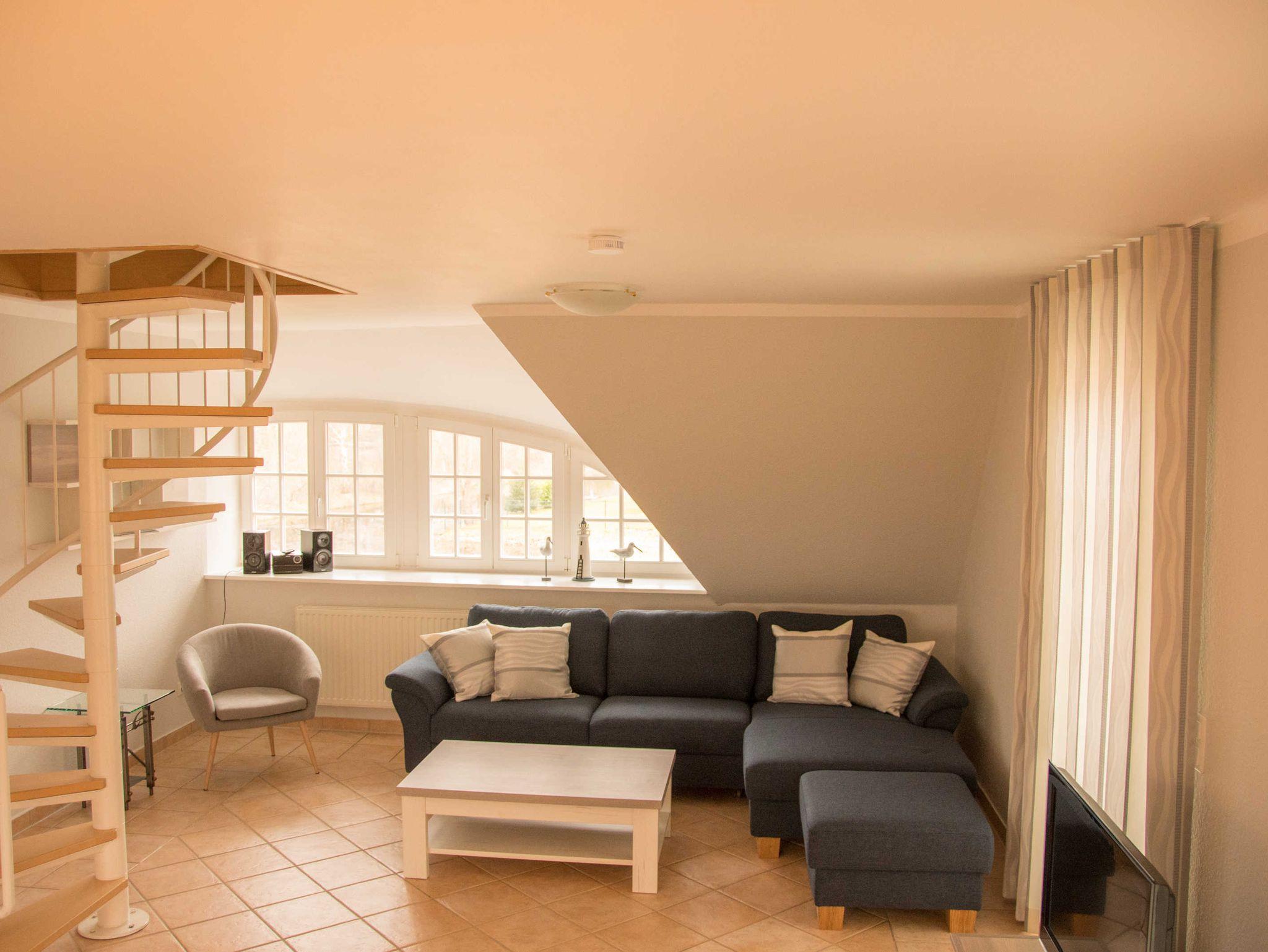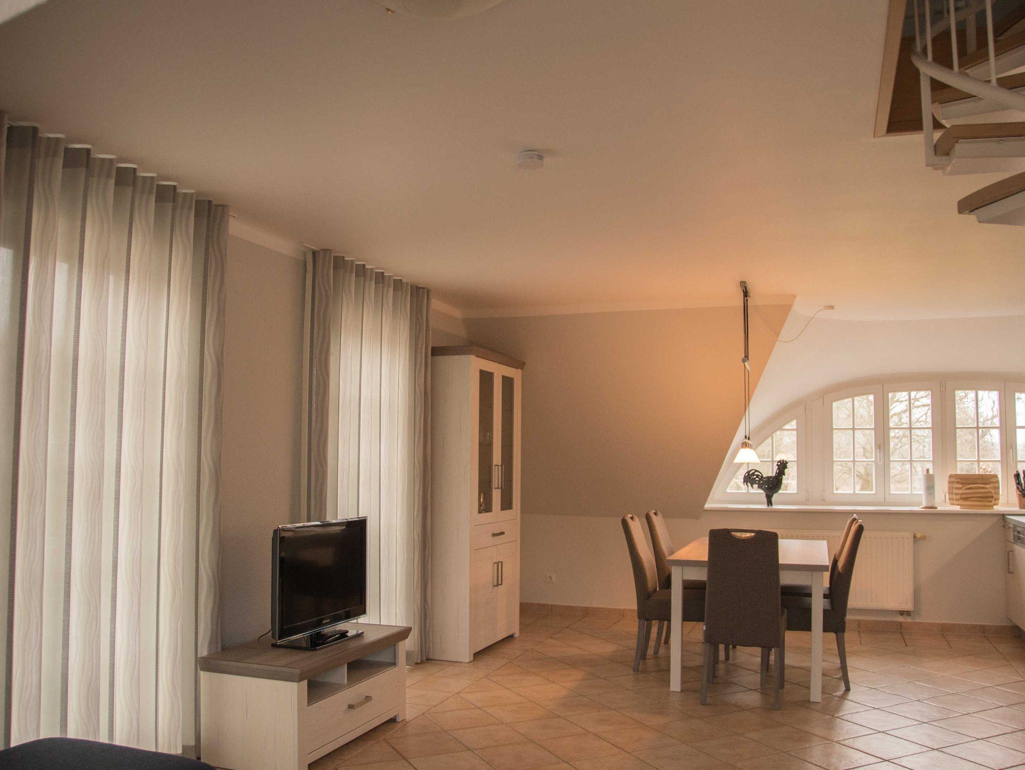 Diese wunderschöne Obergeschosswohnung verfügt über ca. 68 qm und wurde im Jahr 2018 renoviert und neu möbliert. Vom kleinen Balkon haben Sie einen herrlichen Blick auf den Dorfteich und können die Sonne in vollen Zügen genießen. In der unteren Etage befindet sich ein Schlafzimmer mit einem gemütlichen Boxspringbett (180 x 200 cm) und in der oberen Etage - über eine Wendeltreppe aus dem Wohnzimmer erreichbar - ein Schlafbereich mit zwei Einzelbetten (90 x 200 cm). Das durchdachte Farbkonzept mit harmonierenden Farben und aufeinander abgestimmten Möbeln verleiht der Wohnung ihren besonderen Charme. Verdunkelungsmöglichkeiten für die Schlafräume und moderne Boxspringbetten gehören ebenso zum Schlafkomfort wie der Insektenschutz an den Fenstern, damit Ihre Nächste nicht durch ungebetene Besucher gestört werden. Ein Tageslichtbadezimmer mit Dusche lässt auch den Wellnessfaktor nicht zu kurz kommen. Die moderne voll ausgestattete Küche verfügt über Siemens-Markengeräte, so dass auch Kochfreunde voll auf ihre Kosten kommen. Die gemütliche Sofalandschaft lädt zum Relaxen oder zu gemütlichen Fernsehabenden ein. Ein moderner LCD-Fernseher ist ebenso vorhanden wie eine Stereoanlage mit Bluetooth zum direkten Abspielen Ihrer Lieblingsmusik. Zur Wohnung gehört ein kostenfreier Pkw-Stellplatz direkt am Haus sowie ein Fahrradunterstand zum Unterstellen Ihrer Fahrräder. Nutzen Sie auch unseren Brötchenservice und lassen Sie sich jeden Morgen mit frischen Backwaren verwöhnen. Im Garten stehen Liegen zum Entspannen direkt am Teich zur Verfügung. Nutzen Sie auch unseren Brötchenservice und lassen Sie sich jeden Morgen mit frischen Backwaren verwöhnen.
