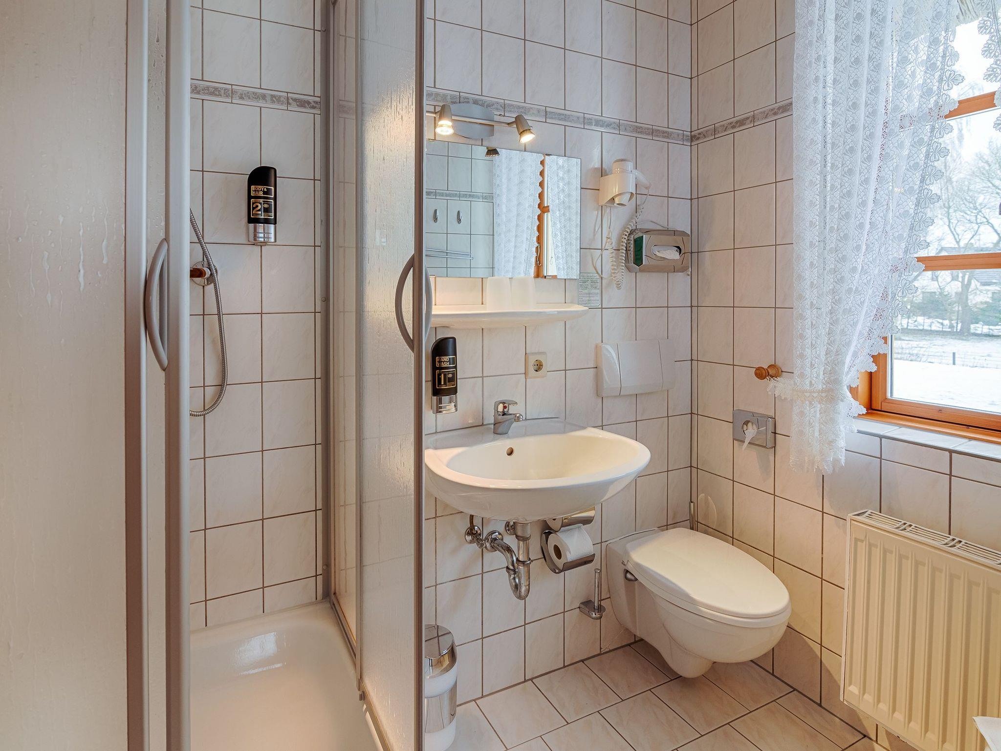 Up'n Hoff ist eine Pension, geschmückt mit einem traditionellen Reetdach. Das Haus im Landhausstil befindet sich in ruhiger Lage umgeben vom herrlichen Gutspark und einem großen Garten. Die Dreibettzimmer sind modern und gemütlich eingerichtet. Alle Zimmer sind ausgestattet mit Dusche/WC, Föhn und Sat-TV. Eine kleine zentrale Kaffeeküche mit Kühlschrank steht allen Gästen zur Verfügung.