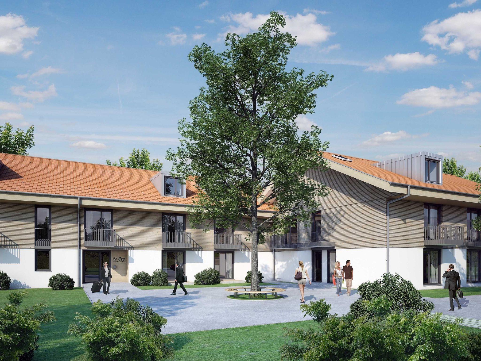 Das Apartmenthaus bei München ist stark mit der Metropolregion verbunden und mit Bahn und Autobahn auch eng an die Großstadt angebunden. Dennoch befindet sich das Apartmenthaus Leo im Oberland und fühlt sich den Traditionen und Besonderheiten dieser landschaftlich schönen Region verbunden. So bietet das Leo einen gemütlichen Innenhof für gemeinsame Begegnungen. Auch die von uns gewählte Architektur betont diesen regionalen Bezug: Die Gebäude sind vollständig aus regionalem Holz errichtet und interpretieren den alpenländischen Stil auf moderne Weise. Auch über die natürlichen Baustoffe hinaus legt das Leo großen Wert auf Nachhaltigkeit: Die Wärme wird klimaschonen mit Holzpellets produziert, die elektrische Strom kommt von der eigenen Solaranlage auf dem Dach.