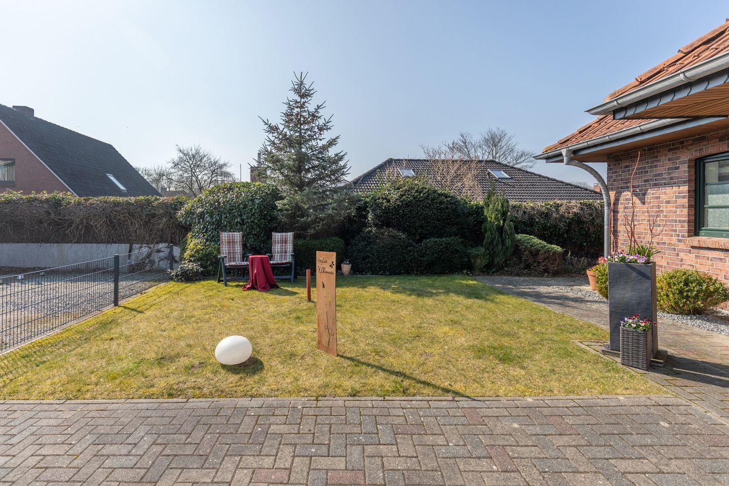 Der gepflegte Garten mit Sitzmöglichkeiten lädt zum Verweilen ein und bietet auch sonnige Plätze im Grünen. Seitlich des Hauses befindet sich zudem eine kleine, sichtgeschützte Terrasse mit Markise. Hier steht ein Tisch mit vier Stühlen bereit – ideal für eine Tasse Kaffee oder ein entspanntes Frühstück im Freien.
