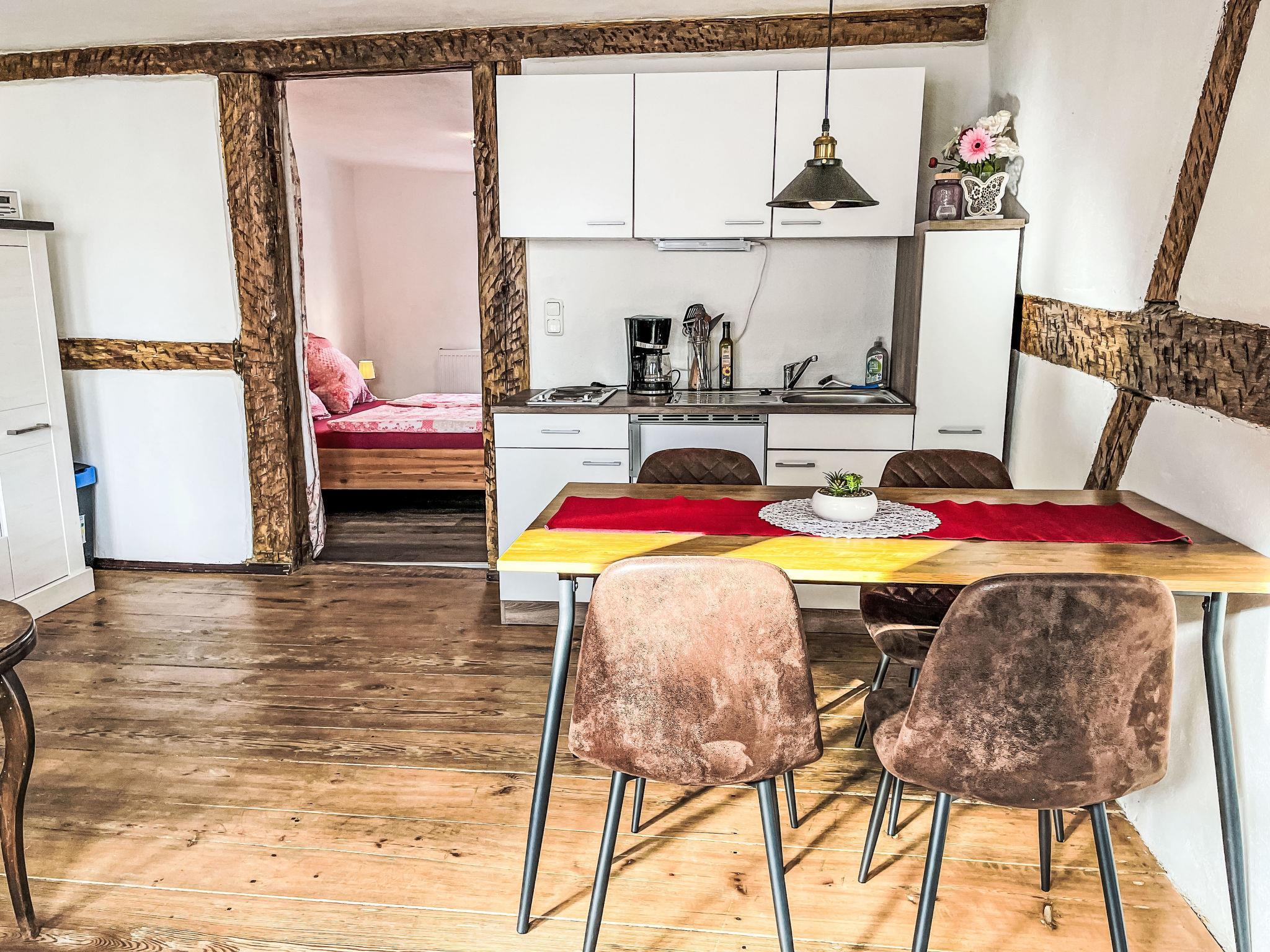 "Therese", 2-room apartment 40 m2 on 1st floor. Rustic and cosy furnishings: living/dining room with dining table and satellite TV (flat screen). 1 room with 1 double bed (180 cm, length 200 cm). Kitchenette (2 hot plates, electric coffee machine). Shower/WC. Heating. Wooden floors. Facilities: Internet (WiFi, free). Parking (1 car) at the house. Please note: non-smokers only. Smoke alarm.