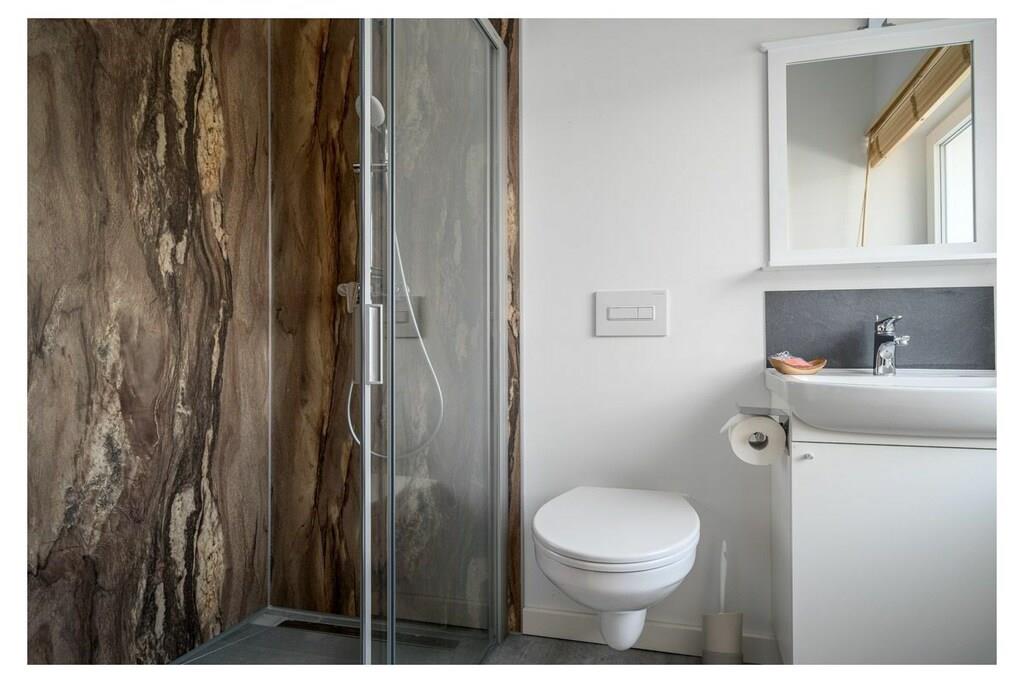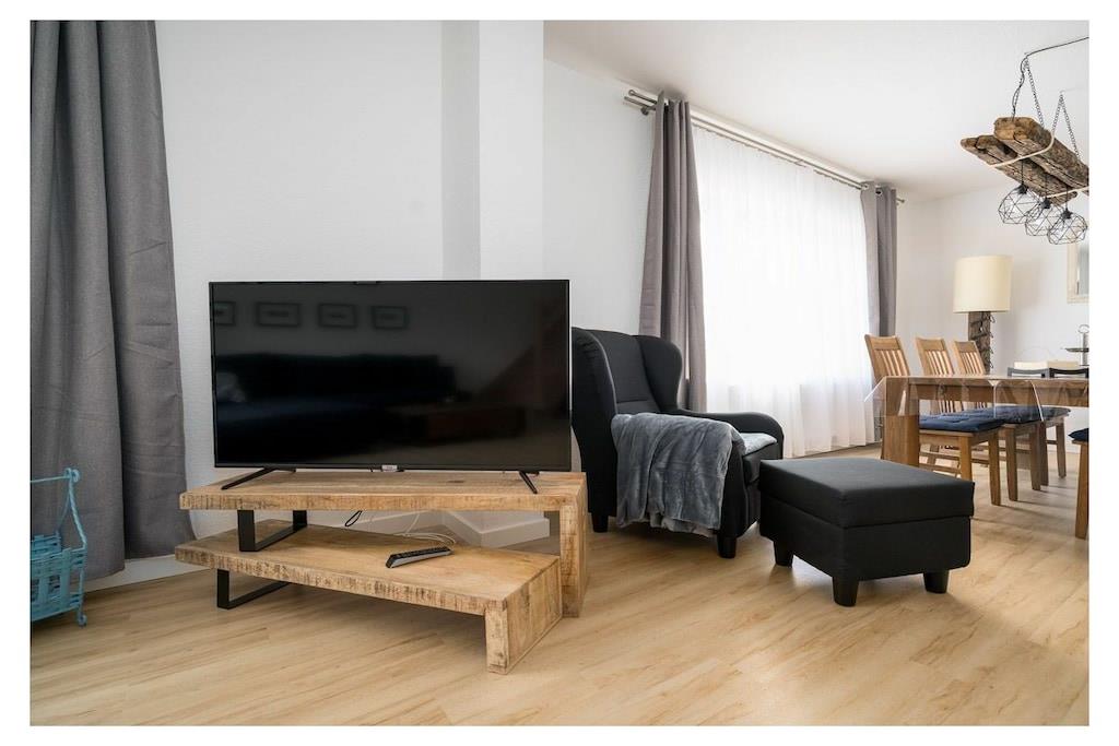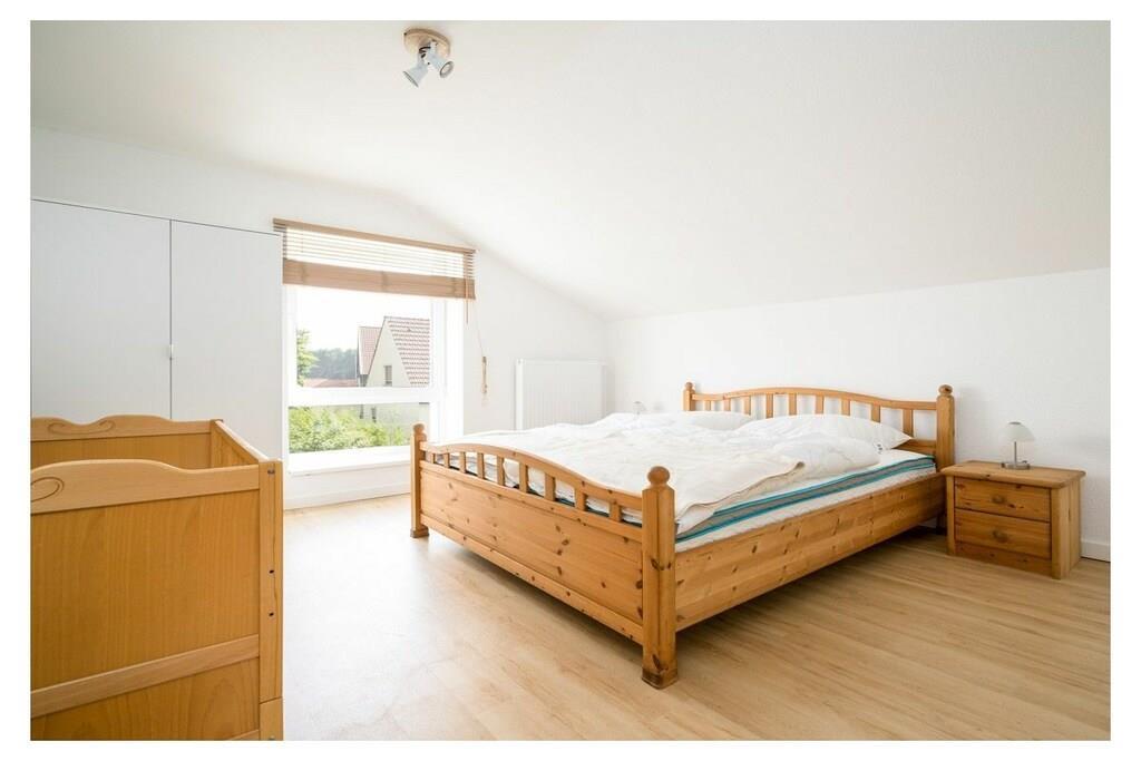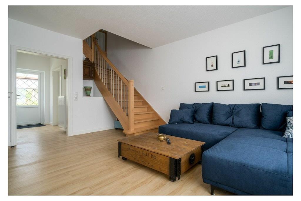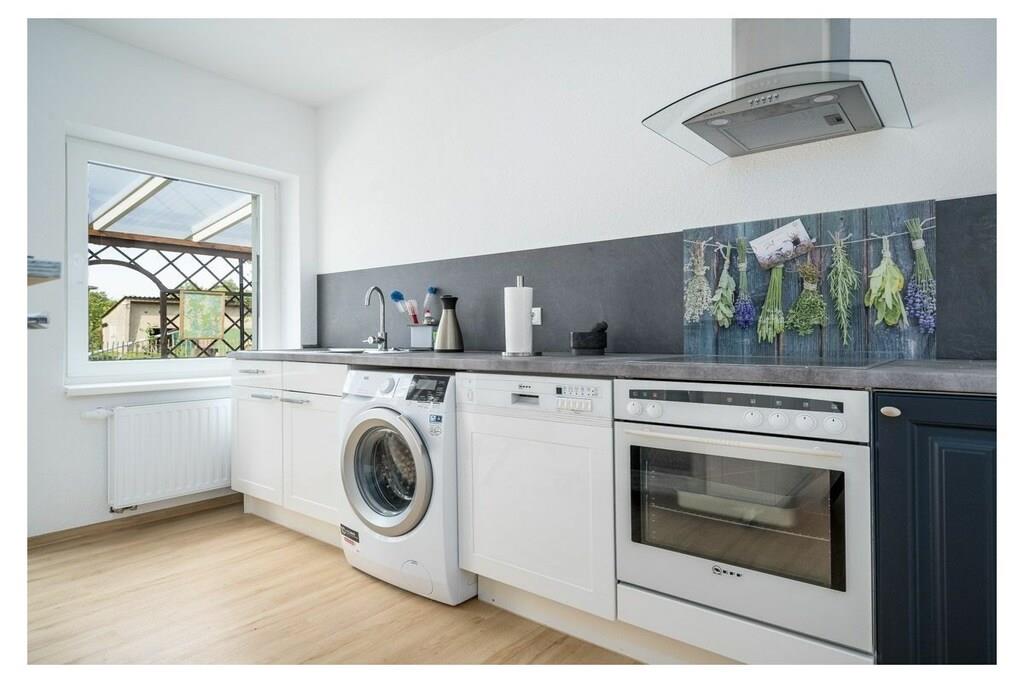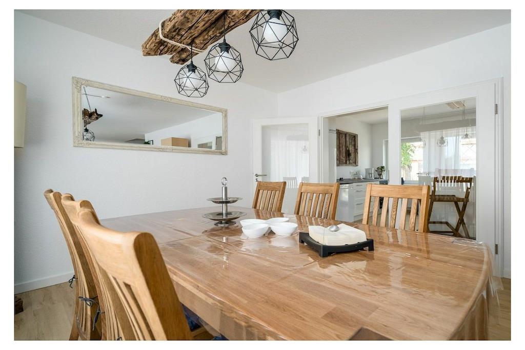 Dies liebevoll sanierte moderne Ferienhaus begeistert durch seine moderne Einrichtung und eine großzügige überdachte Terrasse. Auf zwei Etagen erstreckt sich die Unterkunft mit zwei Schlafzimmern, einer ausziehbaren Schlafcouch im Wohnzimmer sowie einem offenen Wohn- und Essbereich. Zwei Badezimmer mit Dusche bieten Komfort für die Gäste. Das zeitgemäße Interieur eignet sich perfekt für 4-6 Personen. Die Terrasse lädt dazu ein, die Natur in vollen Zügen zu genießen und bietet die Möglichkeit zum Grillen. Zahlreiche durchdachte Details, darunter WLAN, Fliegengitter, eine möblierte Terrasse, Kinderutensilien, ein Geschirrspüler und ein Parkplatz direkt am Haus, gehören zur selbstverständlichen Ausstattung. Dieses Ferienhaus überzeugt durch viele kleine und große Annehmlichkeiten und ist ein ganz besonderes Angebot. Zusätzliche Extras wie Bettwäsche und Handtücher (diese sind NICHT in Ihrer Buchung enthalten), Wellnesspaket, Kaminholz oder ein Bollerwagen können über unsere Gäste-App dazu gebucht werden. Erleben Sie einen unvergesslichen Aufenthalt in diesem traumhaften Ferienhaus an der Müritz! ? Besuchen Sie unsere Website AllerleiMeer.de für einen 3D-Rundgang und weitere Informationen.