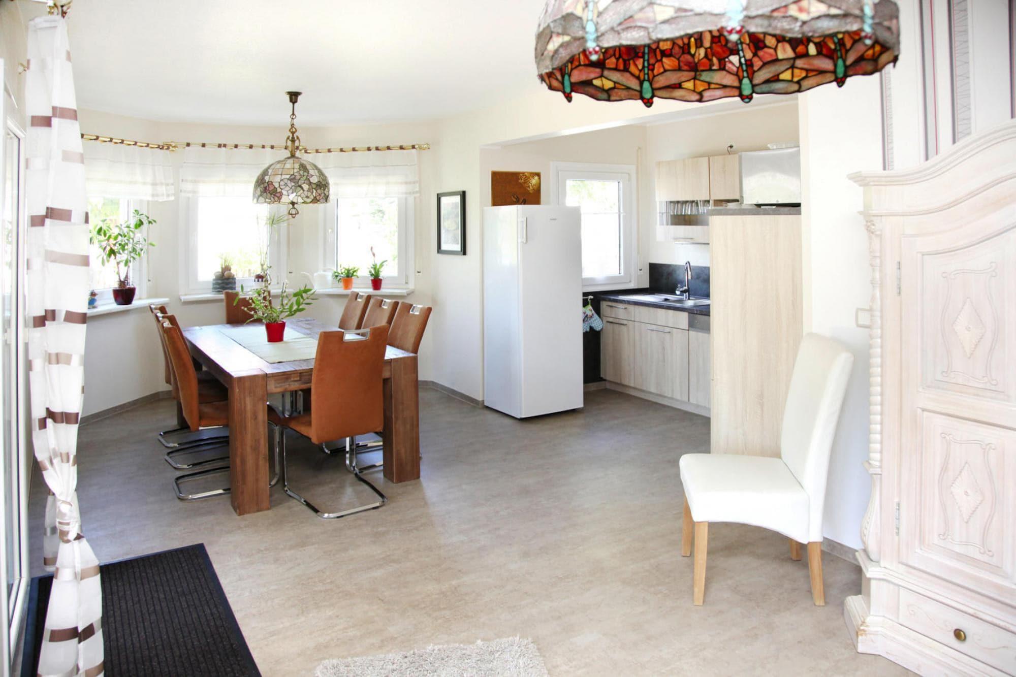 Jeres rummelige, midlertidige hjem ligger nær Mirow-søen, midt i det fortryllende skov- og sølandskab i Mecklenburgs sødistrikt. Du vil helt sikkert sætte pris på den store terrasse med ovn og husets fine møbler. Her kan I nyde livet med hele familien: fire soveværelser og to badeværelser sørger for, at der ikke er nogen stress om morgenen, og at hver feriedag starter afslappet. Mirow ligger direkte ved Müritz-Havel-vandvejen og tilbyder ideelle forhold for vandsportsentusiaster. Tip: Besøg den romantiske slotsø med det historiske porthus fra 1588, residenspalæet og den ærværdige Johanniterkirche. Højdepunkter inkluderer: Vand og elektricitet Wi-Fi Aktiviteter i nærheden: Vandrere, cyklister og ryttere vil især sætte pris på den bilfri skov og de bilfri stier. Det omkringliggende område med sin unikke flora og fauna er en sand attraktion for naturelskende feriegæster. Omkring Mirow finder du også et attraktivt vandsportsområde: Udover rundture på Müritz med udflugtsbåd er der også bådudlejning og kanostationer, hvor du kan deltage i organiserede kanoture eller udforske dette vidunderlige område på egen hånd.