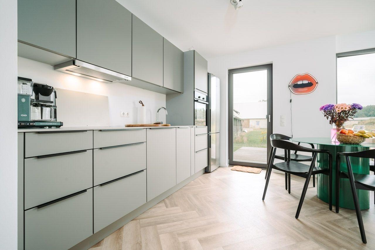 Die Ferienwohnung bietet modernen Komfort in einem ansprechenden Ambiente. Mit zwei Schlafzimmern, ausgestattet mit je einem Doppelbett, ist sie ideal für Familien oder Paare. Die offene Küche überzeugt durch hochwertige Gerätschaften wie einen Elektro-/Gasherd, Backofen, Geschirrspüler und Kühlschrank und ist vollständig mit Geschirr und Besteck ausgestattet. Ein gemütliches Duschbad mit bodengleicher Dusche und Fenster sorgt für erfrischende Momente. Der Wohnbereich bietet mit Sofa, Kamin/Kachelofen und HiFi-Anlage ausreichend Raum zum Entspannen. Zur Ausstattung gehören auch WLAN, Waschmaschine, Wäschetrockner und Fußbodenheizung. Für Familien mit Kleinkindern stehen ein Kinderhochstuhl sowie Spielsachen und ein Babyfon bereit. Zusätzlich gibt es Parkmöglichkeiten und ein Starterset an Gewürzen und Reinigungsmitteln. Die Ferienwohnung ist allergikergeeignet und durch Fliegengitter geschützt. Ein sonniger Esstisch und gemütliche Brettspiele runden das Angebot ab. Ideal für einen erholsamen Aufenthalt.