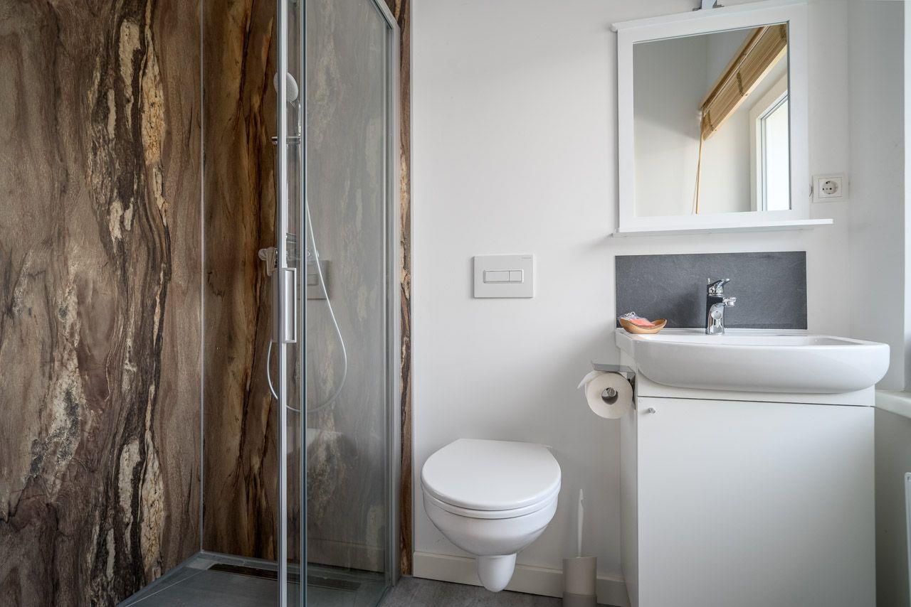 Dies liebevoll sanierte moderne Ferienhaus begeistert durch seine moderne Einrichtung und eine großzügige überdachte Terrasse. Auf zwei Etagen erstreckt sich die Unterkunft mit zwei Schlafzimmern, einer ausziehbaren Schlafcouch im Wohnzimmer sowie einem offenen Wohn- und Essbereich. Zwei Badezimmer mit Dusche bieten Komfort für die Gäste. Das zeitgemäße Interieur eignet sich perfekt für 4-6 Personen. Die Terrasse lädt dazu ein, die Natur in vollen Zügen zu genießen und bietet die Möglichkeit zum Grillen. Zahlreiche durchdachte Details, darunter WLAN, Fliegengitter, eine möblierte Terrasse, Kinderutensilien, ein Geschirrspüler und ein Parkplatz direkt am Haus, gehören zur selbstverständlichen Ausstattung. Dieses Ferienhaus überzeugt durch viele kleine und große Annehmlichkeiten und ist ein ganz besonderes Angebot.
