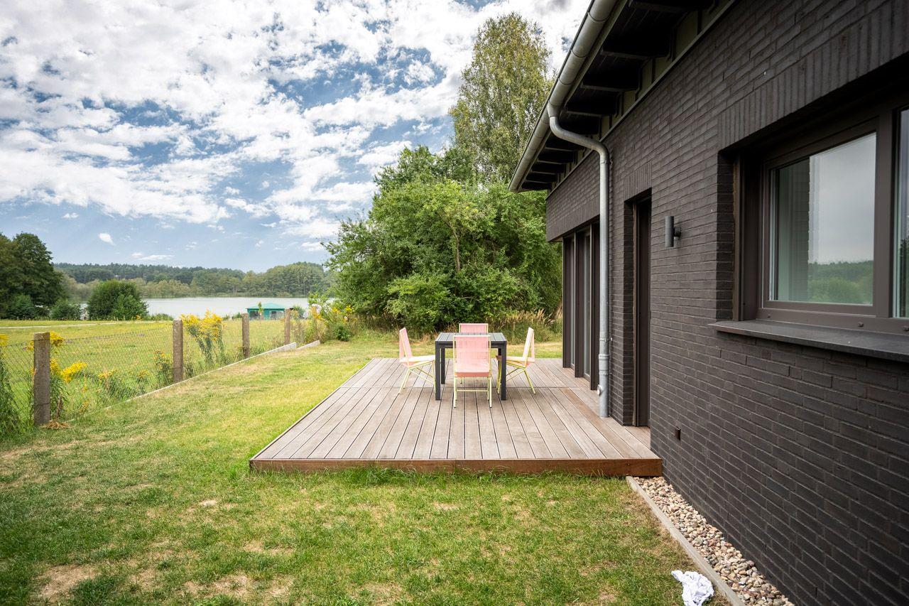 Zurücklehnen und entspannen mit Blick zum kleinen See – in dieser ruhigen, neuerbauten, modernen und liebevoll ausgestatteten Ferienwohnung in einem Luxusferienhaus komplett eingezäunt mit 2 Appartements - großzügig voneinander getrennt. Die vollausgestattete Küche mit Spülmaschine, die große West-Terrasse, die zwei getrennten Schlafzimmer mit je einem Smart TV, die bodengleiche Dusche, Fußbodenheizung, elektrische Rollläden an allen Fenstern und der Garten mit Feuerstelle lassen keine Wünsche offen. Die umfangreich bestückte Kinderspielecke zaubert ein Lächeln in alle Kinderaugen und macht den Urlaub zum Erlebnis. Der Seeblick den man aus jedem Raum hat, bringt die Natur noch ein Stückchen näher. WLAN, Carport PKW Stellplatz, Unterstellmöglichkeiten im Carport für Fahrräder und genügend Platz zum Spielen und Verweilen auf dem großen Grundstück oder der traumhaften Terrasse mit Blick auf den kleinen See. Eine Hängematte und 2 gemütliche Beachchairs bieten Relaxen pur. Der See hat keinen direkten Wasserzugang.