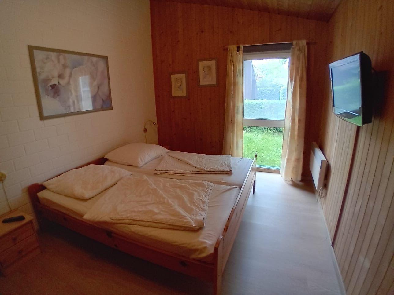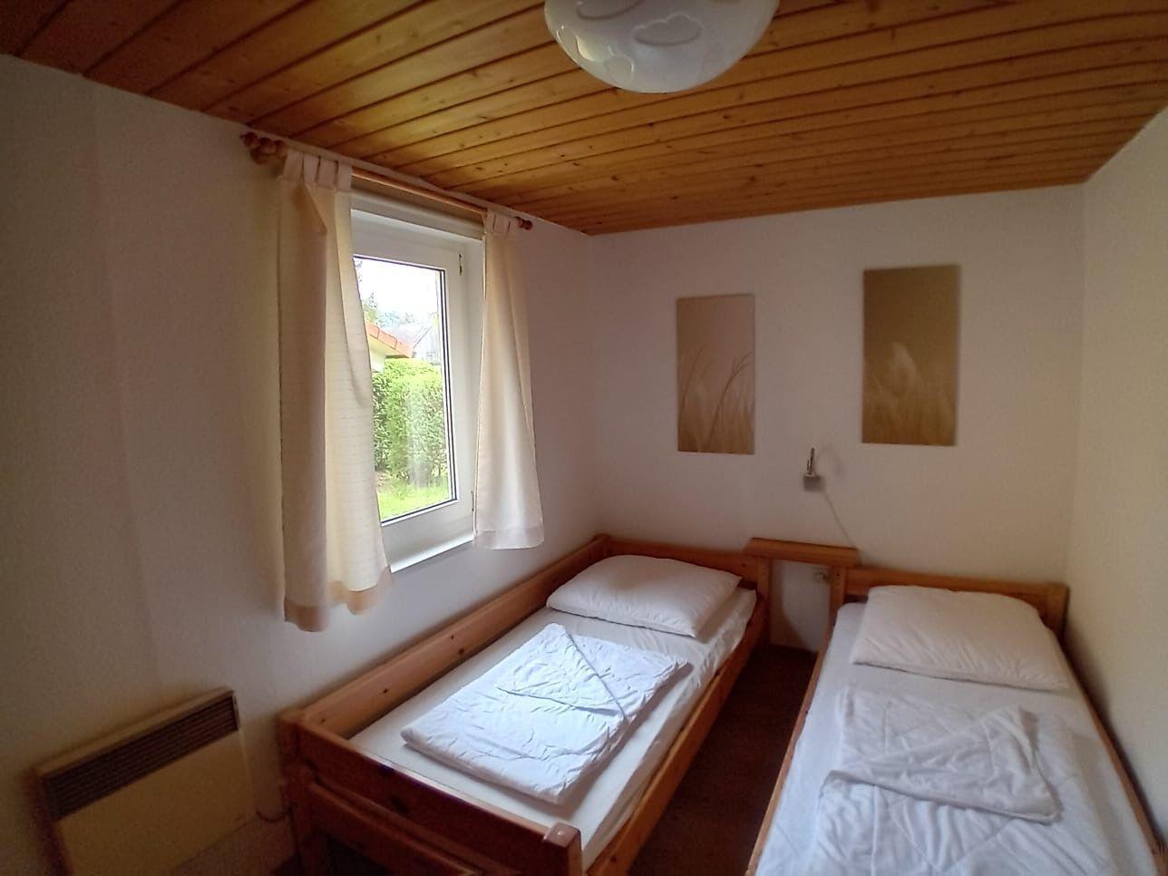 Die Doppelhaushälfte bietet Platz für bis zu 4 Personen auf einer Etage mit 2 Schlafzimmern, offenem Wohn- und Essbereich, Küchenzeile, Terrasse und Abstellraum.