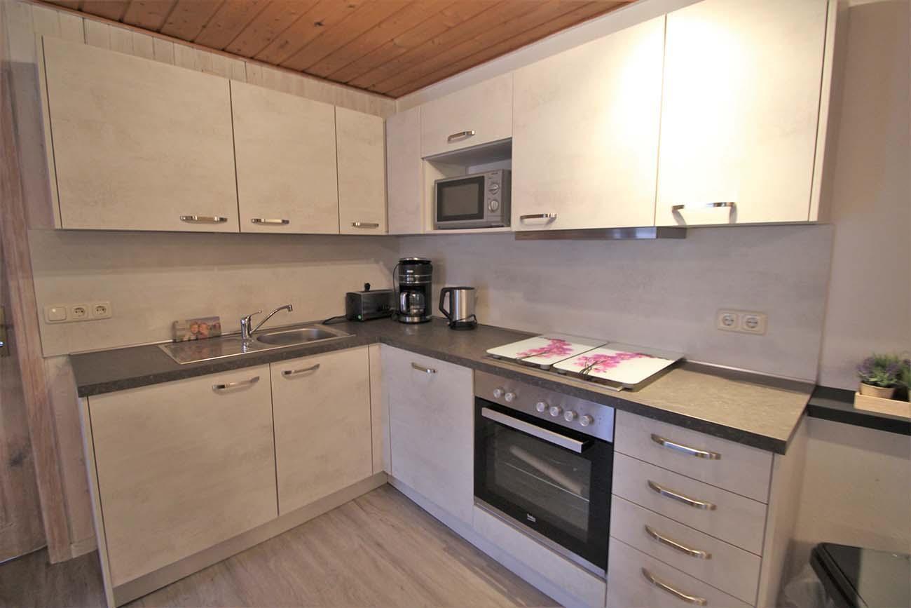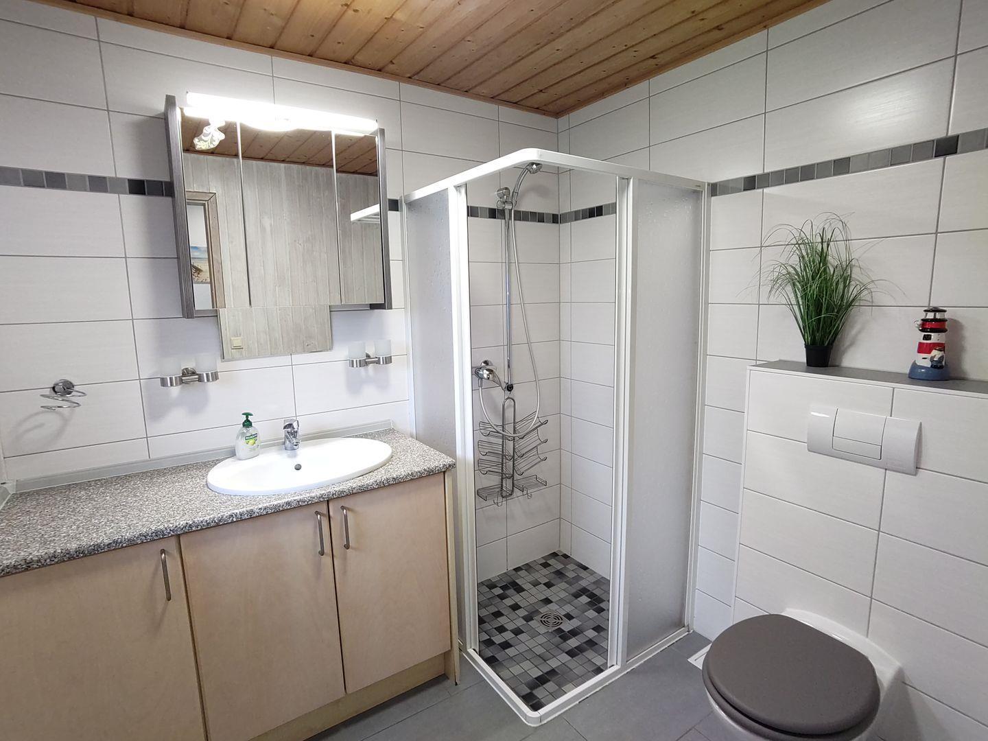 Die Doppelhaushälfte bietet Platz für bis zu 4 Personen auf einer Etage mit 2 Schlafzimmern, offenem Wohn- und Essbereich, Küchenzeile, Terrasse und Abstellraum.