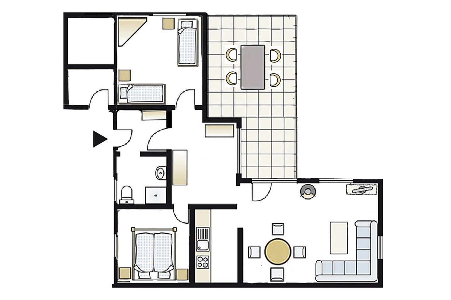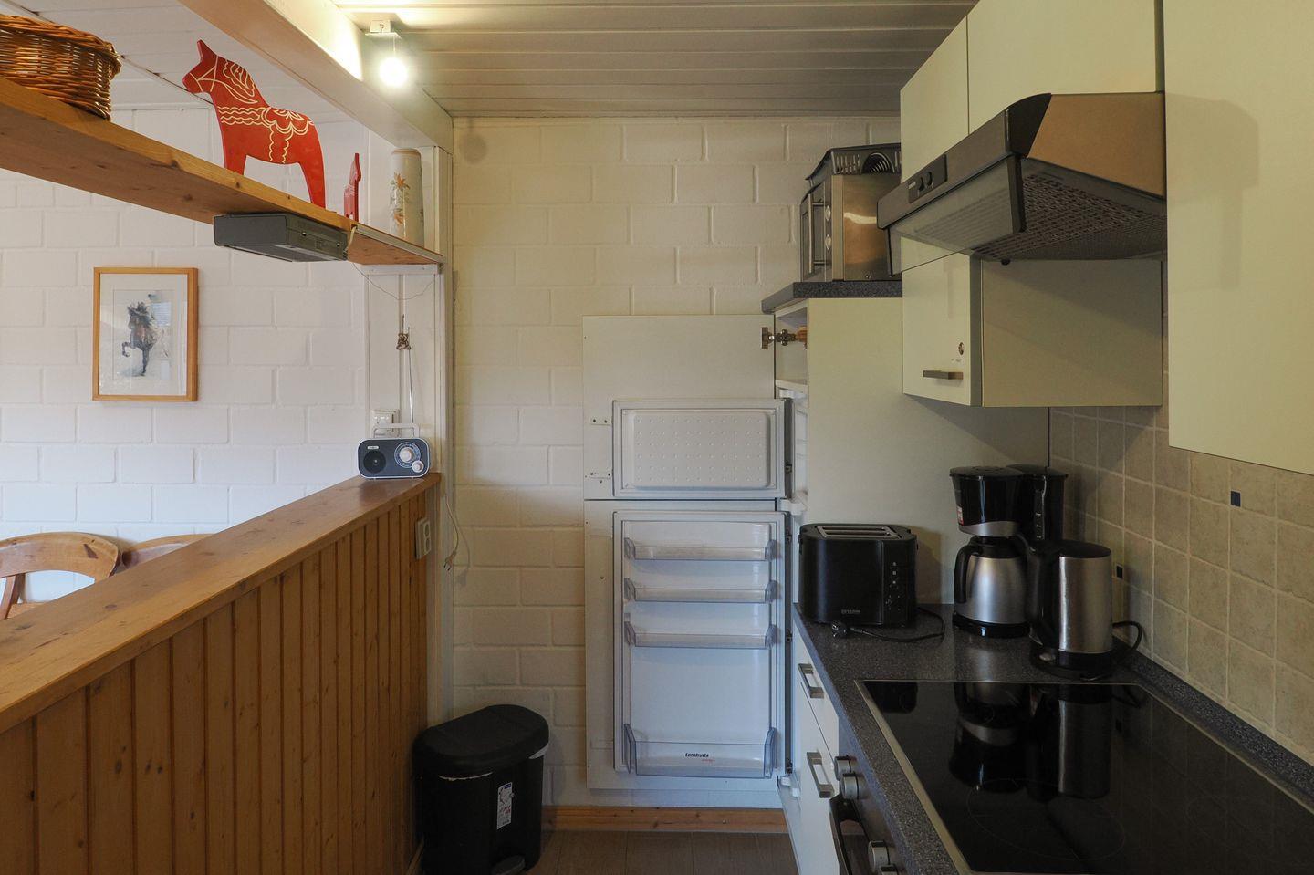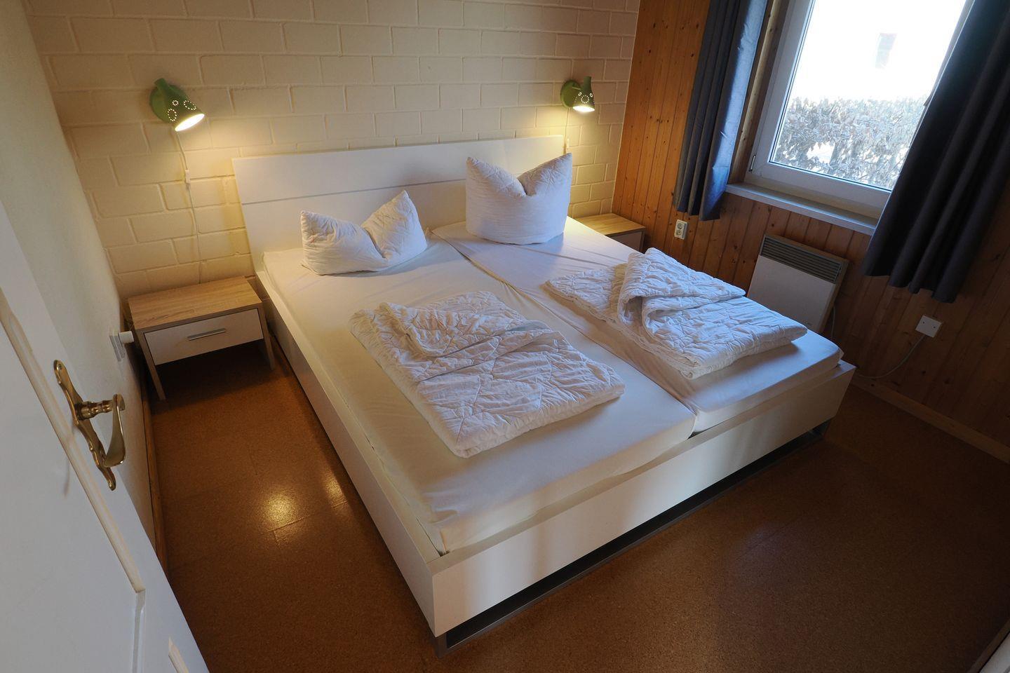 Die Doppelhaushälfte bietet Platz für bis zu 4 Personen auf einer Etage mit 2 Schlafzimmern, offenem Wohn- und Essbereich, Küchenzeile, Terrasse und Abstellraum.