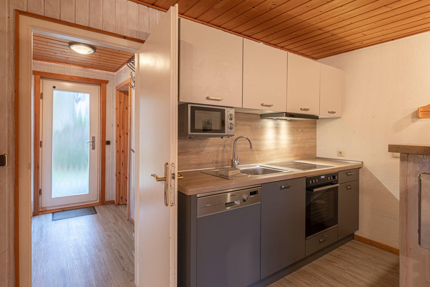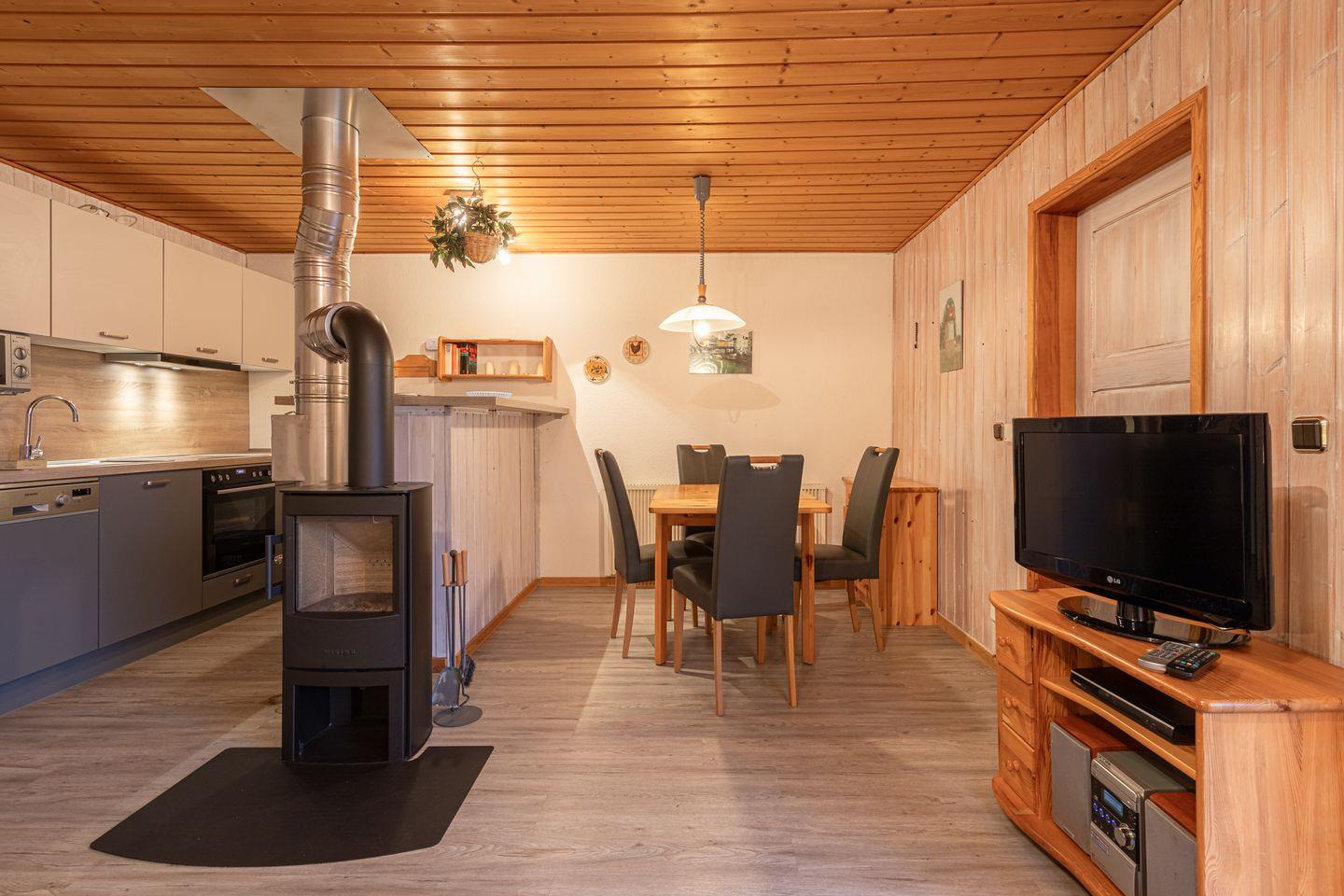 Die Doppelhaushälfte bietet Platz für bis zu 4 Personen auf einer Etage mit 2 Schlafzimmern, offenem Wohn- und Essbereich, Küchenzeile, Terrasse und Abstellraum.
