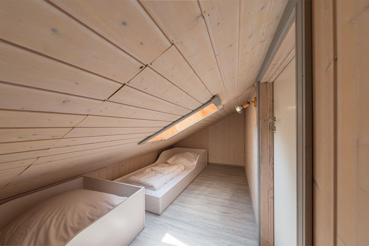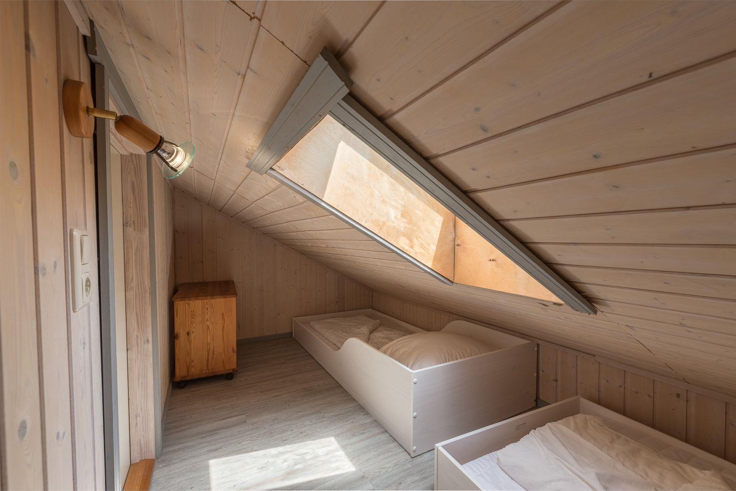 Das Ferienhaus im skandinavischen Stil bietet Platz für bis zu 8 Personen auf 2 Etagen mit 3 Schlafzimmern und offener Schlafgalerie, Wohn-/Essbereich mit Kaminofen, Einbauküche, 2 Badezimmer, Sauna und Whirlpool, Abstellraum, 2 Pkw-Stellplätze und Terrasse.