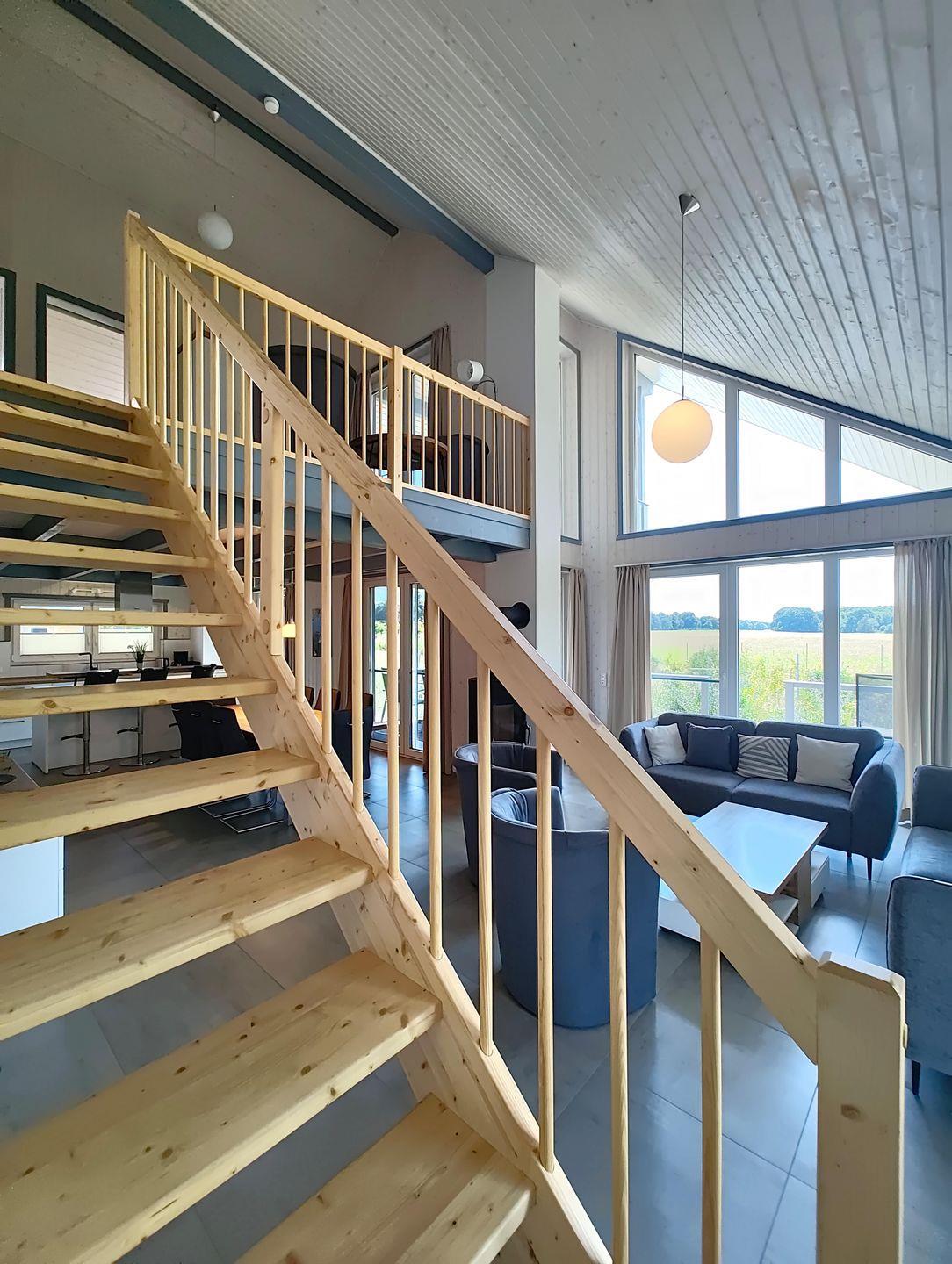 Das Ferienhaus im skandinavischem Stil bietet Platz für bis zu 8 Personen auf zwei Etagen mit 4 Schlafzimmern, 2 Badezimmern, Wohn-/Essbereich mit offener Küche, Sauna und Whirlpool, Terrasse und 2 PKW-Stellplätze gehören zur umfangreichen Ausstattung.