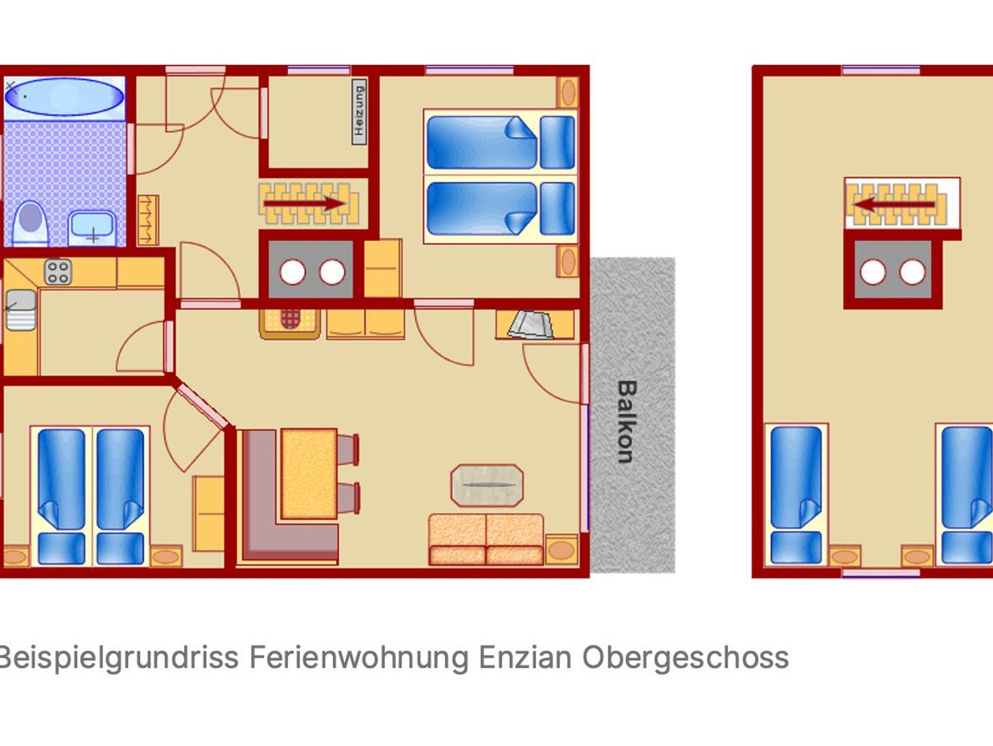 Die Ferienwohnung Enzian im Obergeschoss verfügt aufgrund der Hanglage über einen ebenerdigen Eingang.