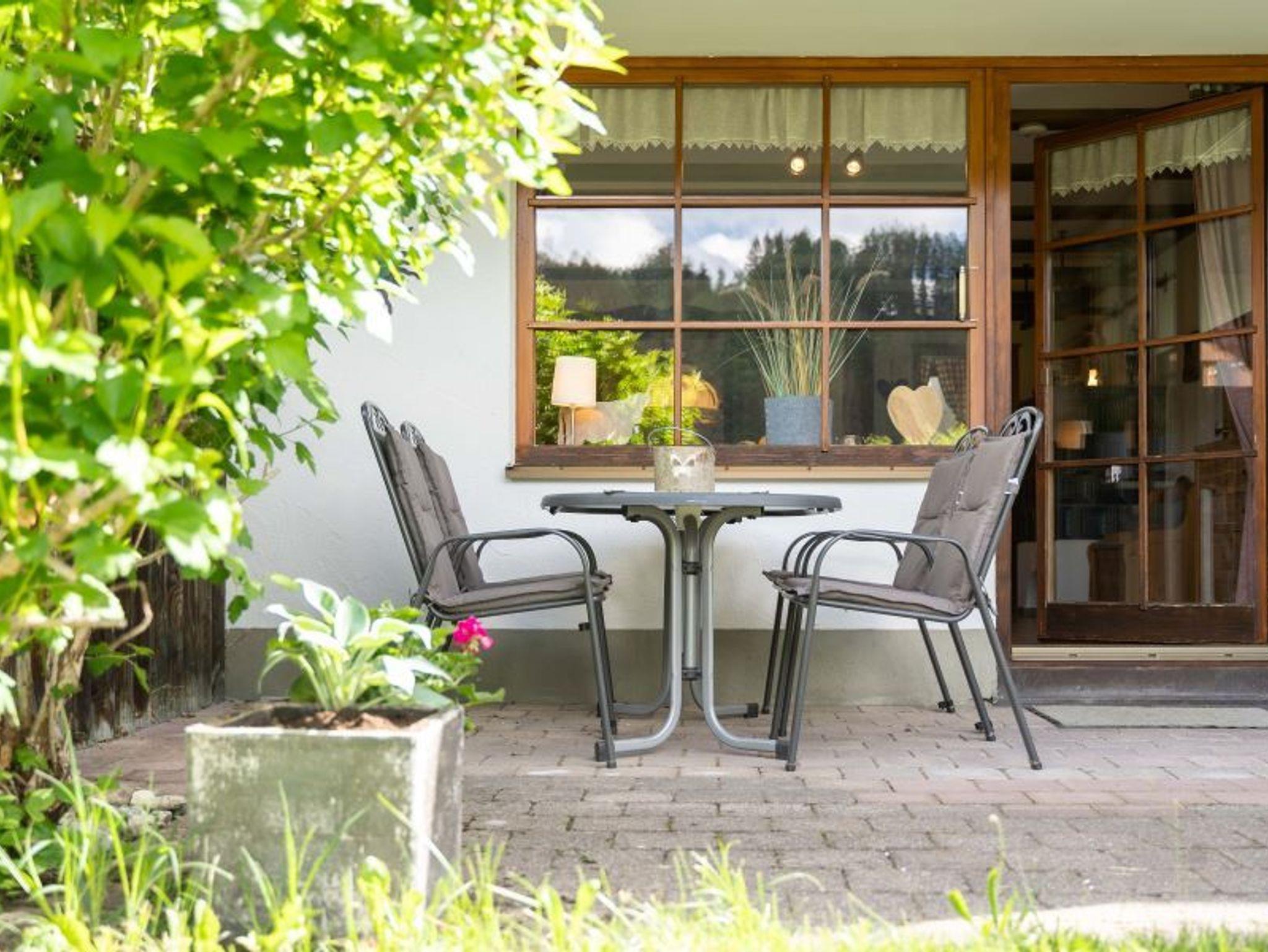 Die Ferienwohnung Enzian im Gartengeschoss ist besonders für Familien mit Kindern geeignet, da ein direkter Zugang zum Garten vorhanden ist.