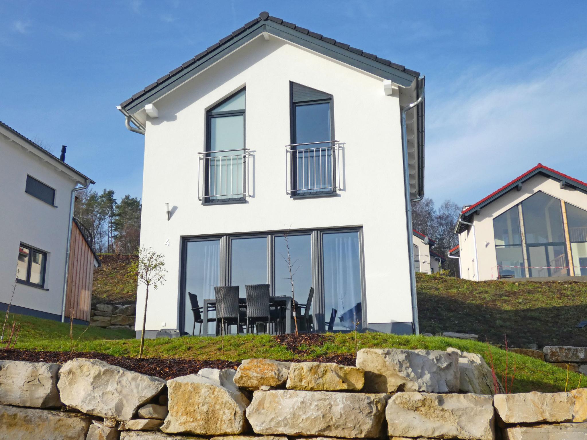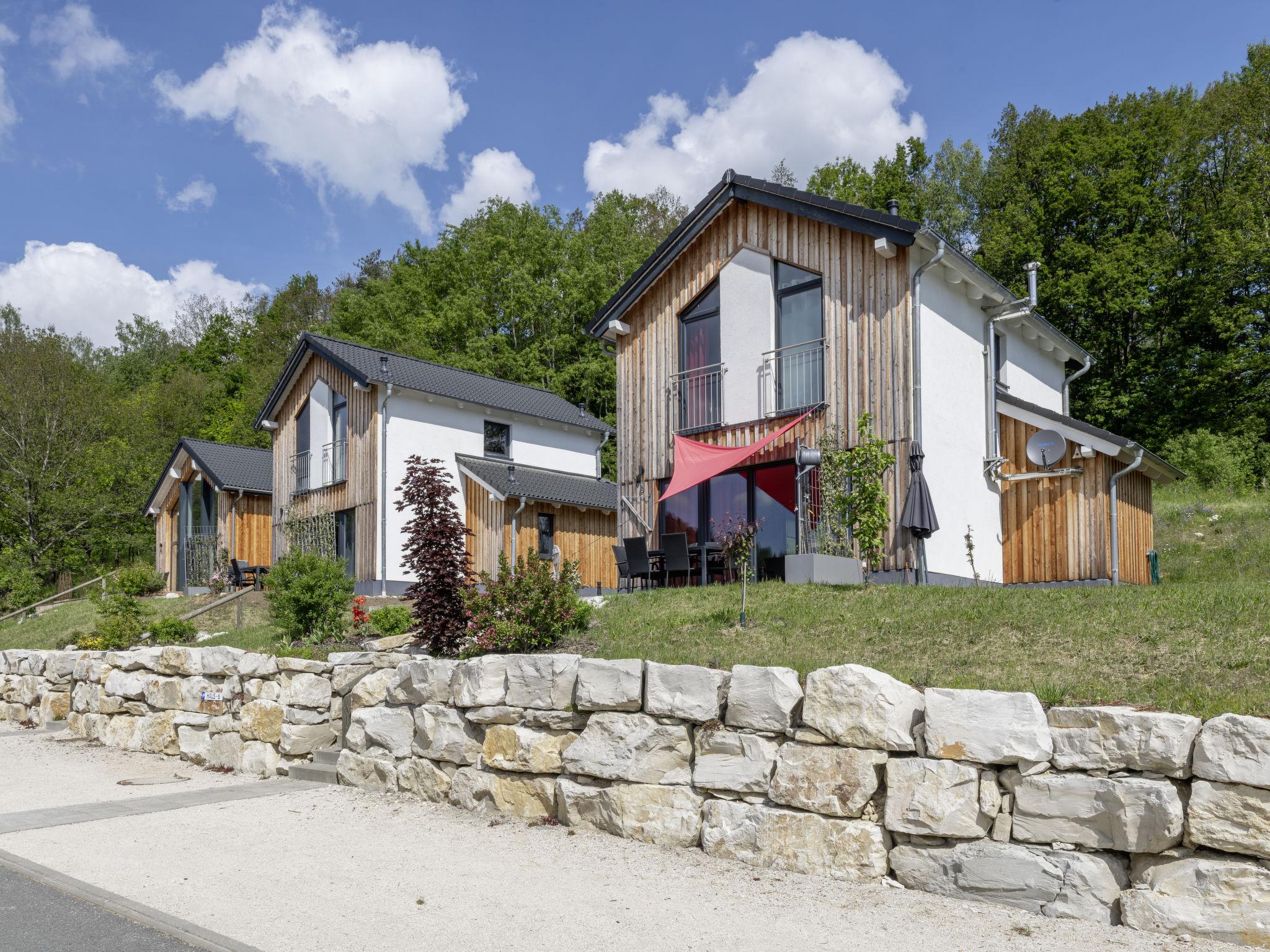 Obernsees 7 km from Mistelgau: Child friendly, modern resort "Feriendorf an der Therme Obernsees". Outside the resort, 2 km from the centre of Obernsees, in a quiet, sunny, elevated position on a slope, 100 m from the edge of the forest, in a cul-de-sac. For shared use: children's playground (slide, swing, sandbox). Private: small garden with lawn. In the complex: reception, central heating system. Shop 6 km, grocery 6 km, supermarket 6 km, restaurant 2 km, bar 6 km, bakery 750 m, café 6 km, bus stop "Therme Obernsee" 600 m, railway station "Bayreuth" 17 km, outdoor swimming pool 12 km, thermal baths "Therme Obernsees" 1 km. Walking paths from the house, cycle lane 100 m. Well-known ski regions can easily be reached: Fichtelgebirge 38 km. Please note: car recommended. The photograph shows a typical example. All houses/apartments are individually designed/furnished. A bike path and entry points to countless short and long-distance hiking trails as well as Nordic walking routes run right by the holiday village in Franconian Switzerland. TRAVEL AND SAVE: Entry (2 hours a day, also on the day of arrival and departure) to the bathing world / thermal bath of the Obernsees thermal spa and the adventure card with numerous discounts in the region are already included in the rental price.