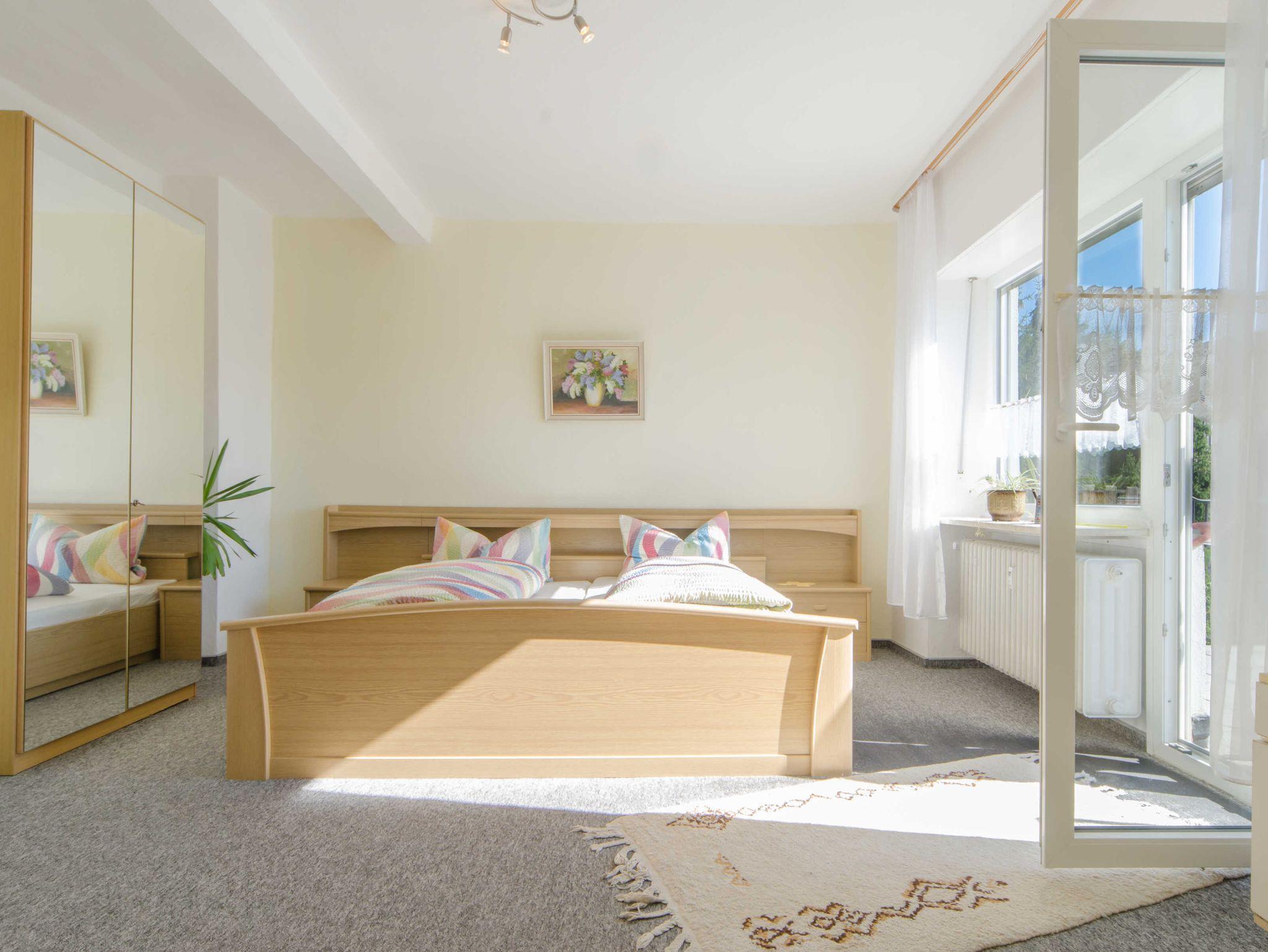 Die komplett ausgestattete Ferienwohnung mit separatem Eingang befindet sich im 1. Stock und verfügt über zwei Schlafzimmer, jeweils mit einem Doppelbett und Kleiderschrank ausgestattet. Ein Reisebett und Hochstuhl stehen gerne zu Ihrer Verfügung.