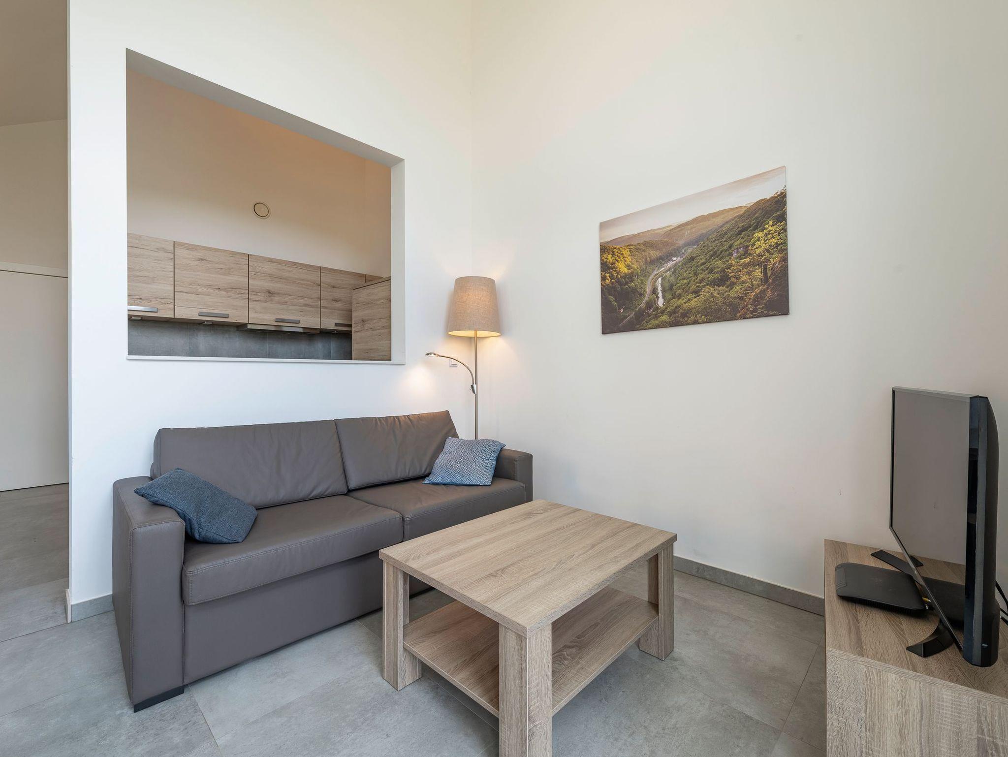 Alle Ferienhäuser des Feriendorfes an der Therme Obernsees sind mit einem hochwertigen möblierten Wohn- und Esszimmer, einer gemütlichen ausziehbaren Sitz- und Schlafcouch sowie einer top ausgestatteten Küche eingerichtet.