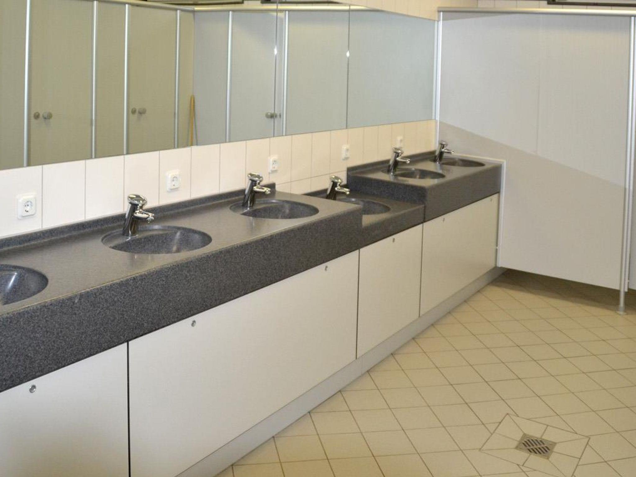 Die Sanitäranlagen befinden sich im gegenüberliegenden Sanitärgebäude.