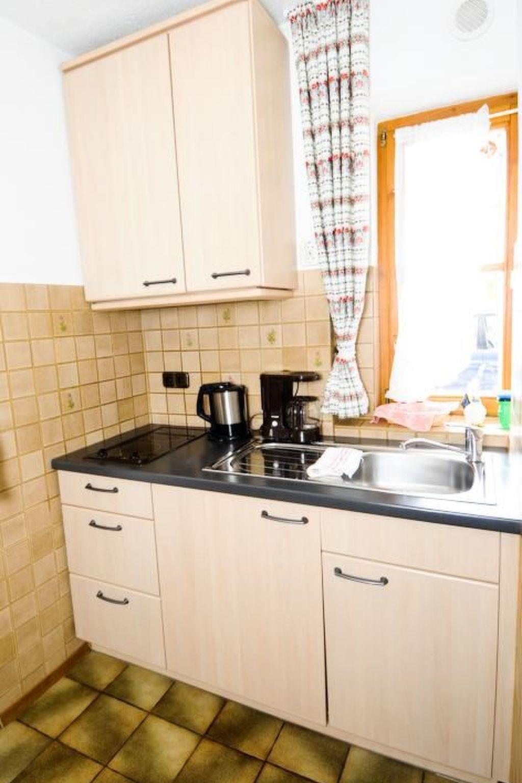 Our inviting top-floor flat is the perfect retreat for two people. All rooms have been carefully designed to ensure comfort and functionality. In addition to a cosy living room/bedroom with a comfortable double bed, TV connection and a dining area, you will find a fully equipped kitchen with a ceramic hob, coffee machine and kettle. There is also a washing machine for your sole use, which will make your everyday life easier.