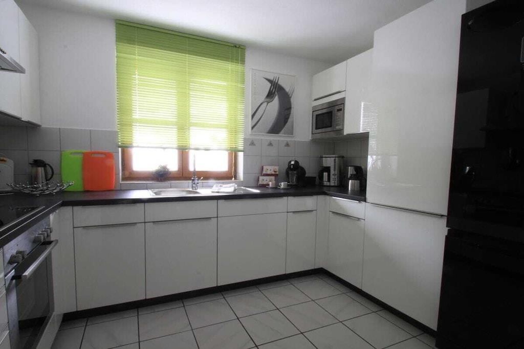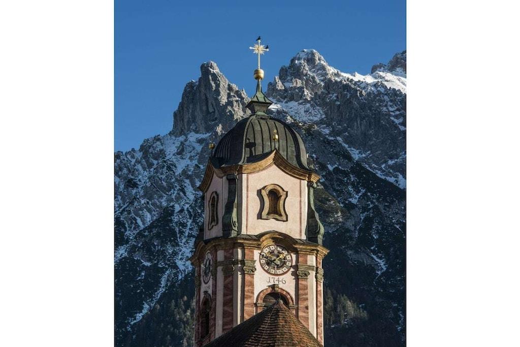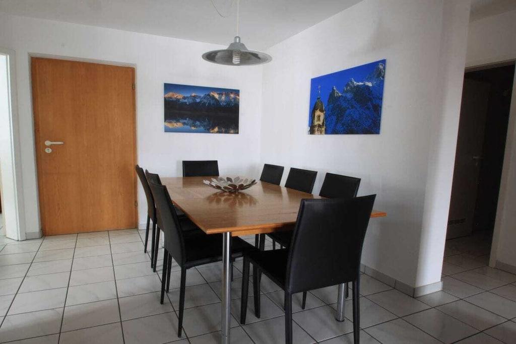 Komfortabel og rummelig ferielejlighed på cirka 104 kvm i Mittenwald med 3 soveværelser, ideel til 9 feriegæster. Der er 2 badeværelser/brusere med toiletter. Køkkenet er udstyret med køleskab/fryser, 4-brænder keramisk kogeplade med ovn og mikrobølgeovn samt opvaskemaskine. Stuen er møbleret med en hjørnesofa i læder, LED-tv og kakkelovn. Satellit-tv og Wi-Fi er også tilgængelige. Balkonen tilbyder en storslået udsigt over Karwendel-bjergene.