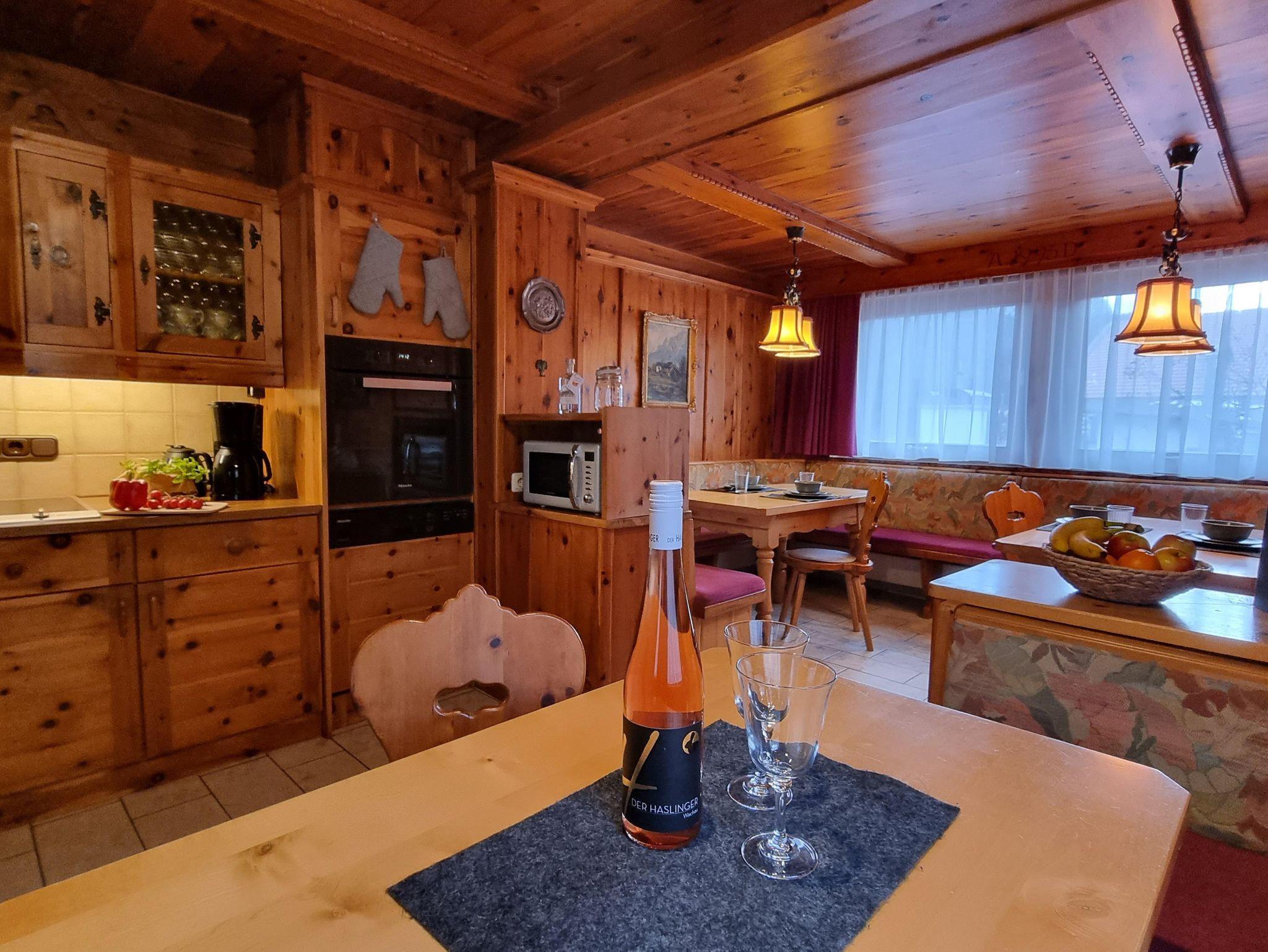 In der großen Zirbenstube befindet sich eine Küchenzeile, Backofen, Kühlschrank, Mikrowelle, Spülmaschine sowie eine große Eckbank mit 3 Tischen, Telefon, Haustresor, Spielesammlung und ein internetfähiger Fernseher.