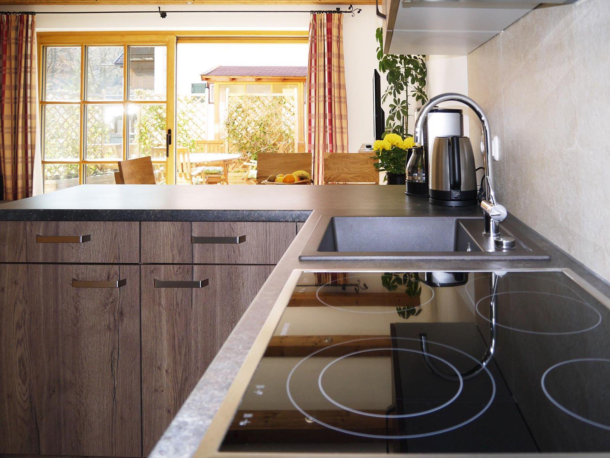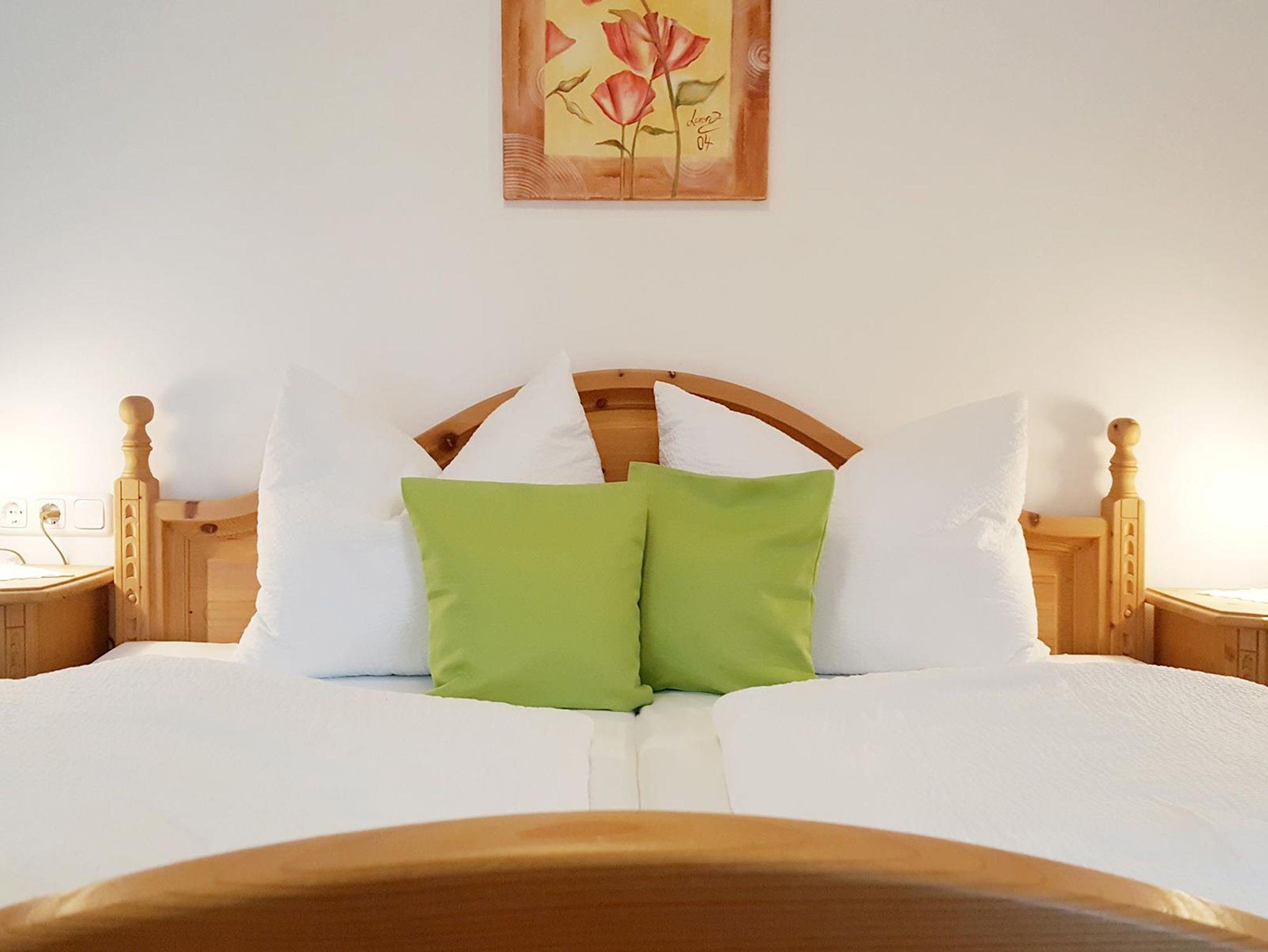 In unserem Haus ist eine weitere Ferienwohnung, 100qm verteilt auf zwei Stockwerken, entstanden. Mit eigenem Eingang und Stellplatz bietet sie bis zu 5 Personen eine gemütliche Unterkunft. Im ersten Stock befinden sich Küche, Wohnzimmer, Schlafzimmer mit Doppelbett, Gäste-WC und eine kleine Garderobe. Über eine Marmortreppe gelangen Sie in den 2.Stock, wo sich ein großzügiges Badezimmer und zwei Schlafzimmer mit je einem Jugendbett verteilen. Die gemütliche Küche mit Eckbank ist mit Cerankochfeld, Backofen, Microwelle, Geschirrspüler,Filterkaffeemaschiene, Toaster und Wasserkocher ausgestattet.Im Wohnzimmer finden Sie eine Sofagarnitur, Fernsehsessel, Couchtisch, TV mit Kabelanschluß.Das Schlafzimmer mit Doppelbett und großem Kleiderschrank aus Vollholz und ein Echtholzboden bestens für Allergiker geeignet.Von der Küche, dem Wohnzimmer und vom Schlafzimmer gelangen Sie auf den Ost-und Südbalkon.