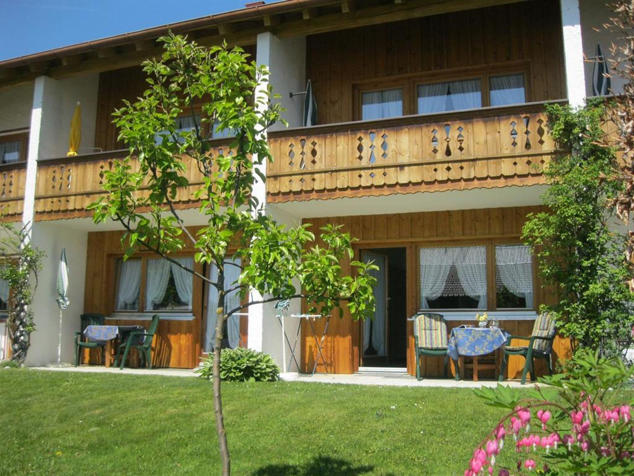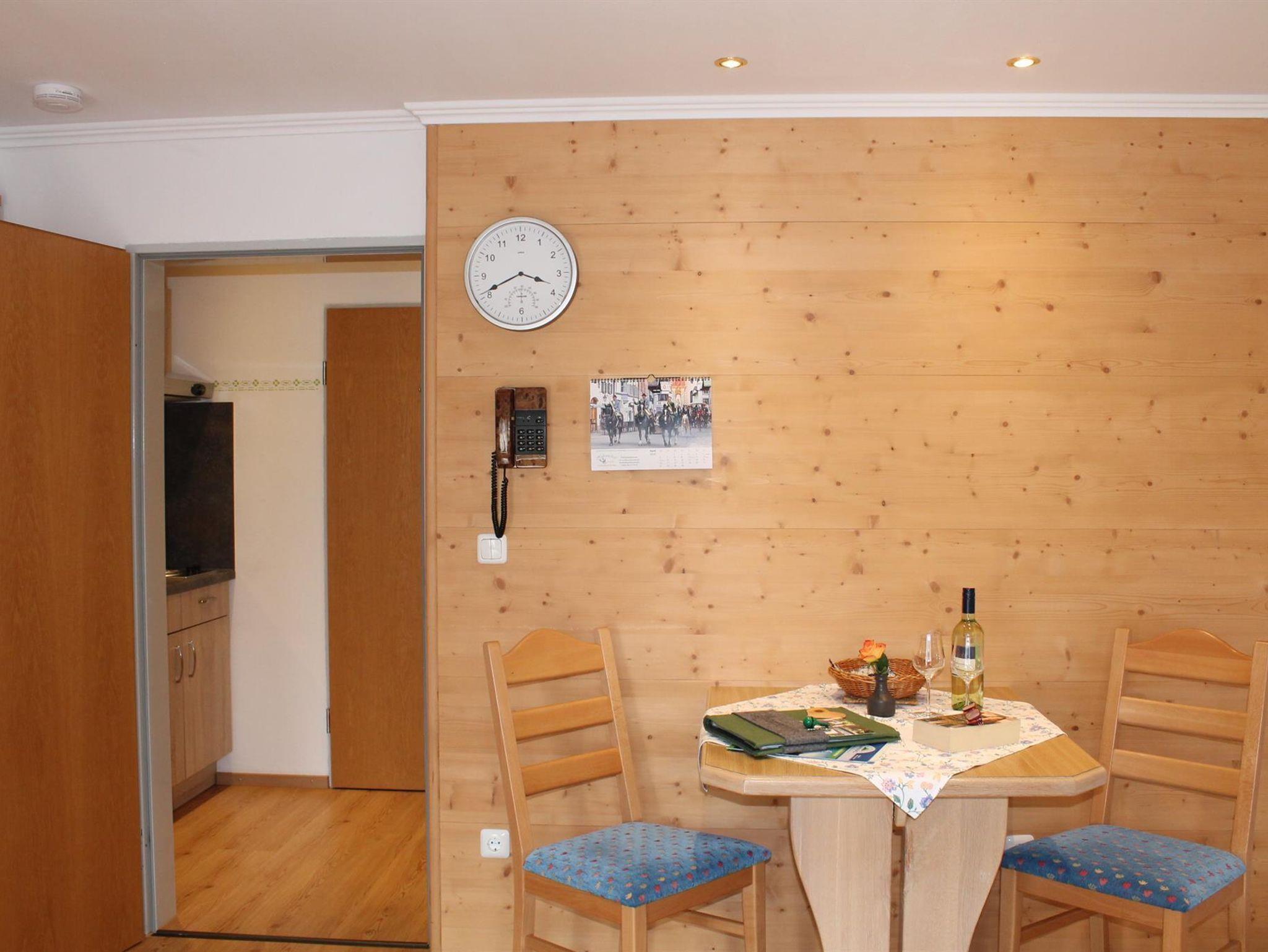 Genießen Sie den herrlichen Bergblick auf unser wunderschönes Karwendel- und Wettersteingebirge von dem Südbalkon Ihrer gemütlichen Ferienwohnung mit 28m². Wohn-Schlafzimmer mit Schrankbetten (normale Betten, tagsüber im Schrank, brauchen abends nur ausgeklappt werden), bequeme Sitzgruppe und Essecke, SAT-TV, Radio, Telefon; sep. Küche mit Kochplatten, Mikrowelle auf Wunsch, Kühlschrank mit Gefrierfach, Kaffeemaschine, Wasserkocher und kompl. Geschirr; Dusche/ WC, Fön; Balkon mit Sonnenschirm und Gartenmöbeln; Bettwäsche, Handtücher, Tischdecken und Geschirrtücher vorhanden