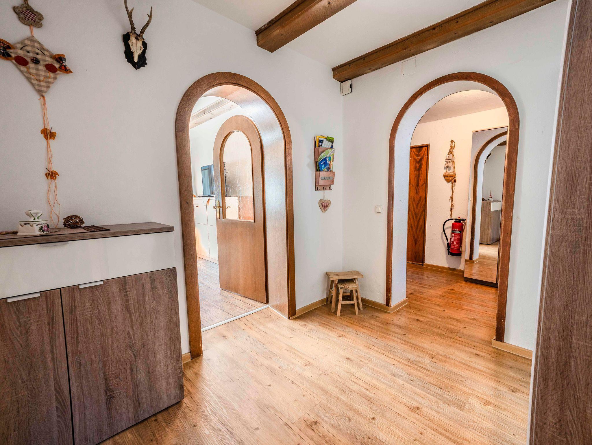 Die Paterrewohnung ist nach Osten ausgerichtet, so dass die Gäste auf ihrer eigenen Terrasse das Frühstück mit einem herrlichen Bergblick in der Morgensonne genießen können. Dies schafft eine entspannte und idyllische Atmosphäre.