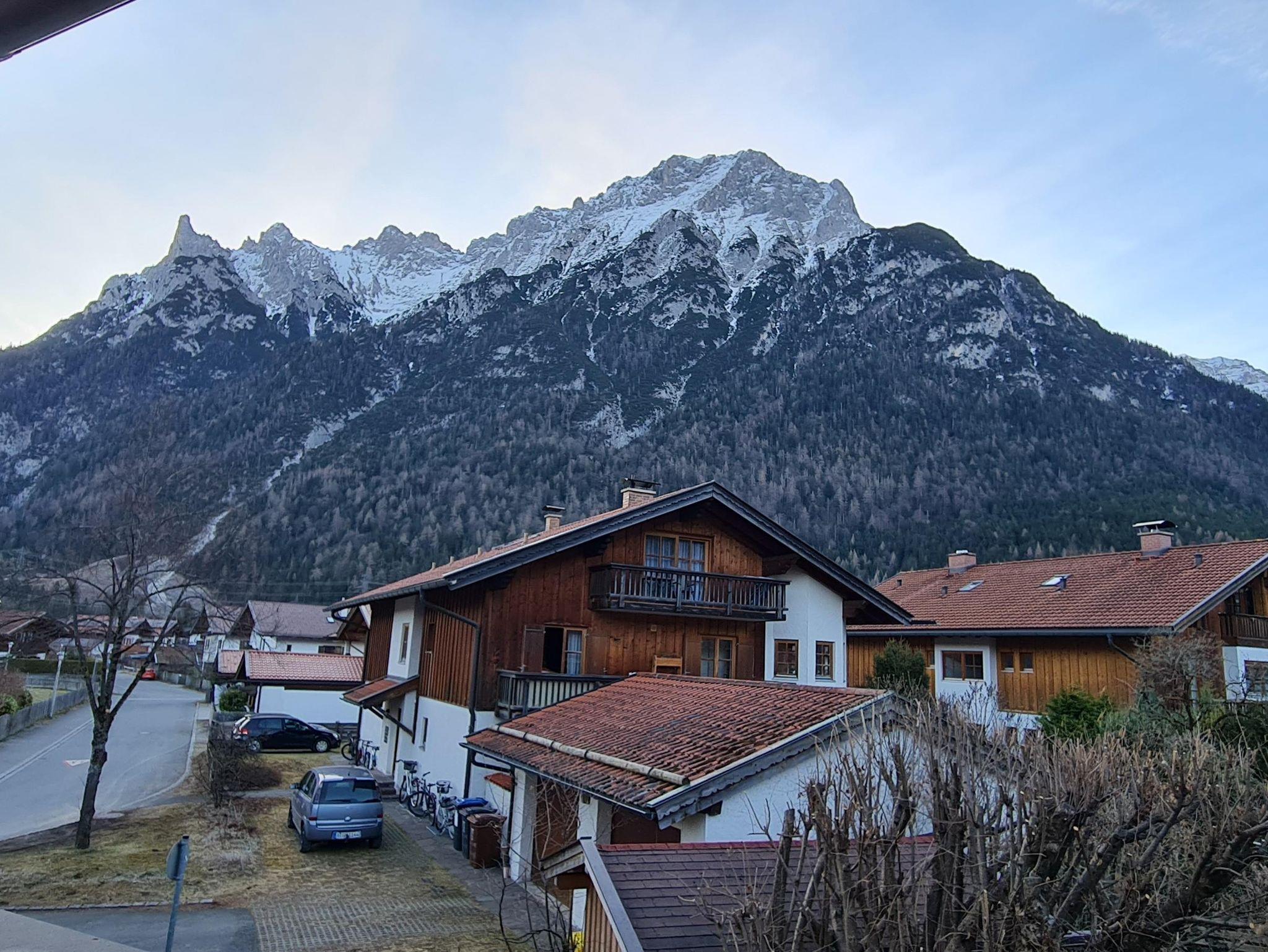 Im 1 Stock befindet sich unsre 60qm große Wohnung für bis zu 4 (3Erwachsene oder 2Erwachsene und 2 Kinder )Personen mit großem Balkon und wunderschönen Blick zum Karwendel .