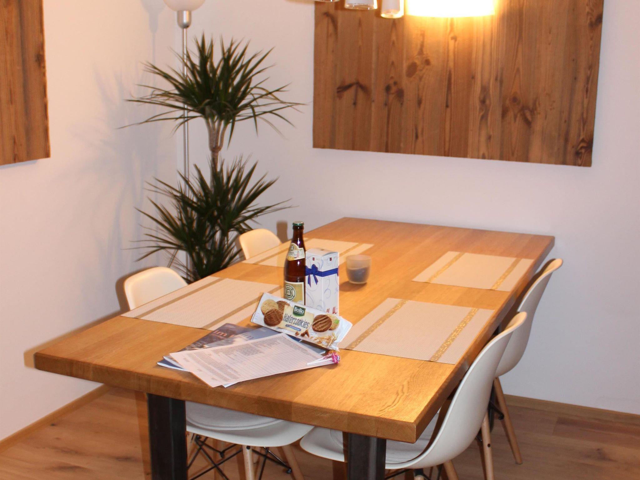 Die Ferienwohnung Feldernblick befindet sich in der ruhig, aber doch zentral gelegenen Goethestraße 33. Die Wohnung befindet sich im 1. Obergeschoss. Mit dem großen ostseitig ausgerichteten Balkon hat man einen Traumblick zum Karwendel. Die ca. 60 m² große Wohnung ist ideal für Familien geeignet, da mit einer Ausziehcouch und 2 Beistellbetten bis zu 6 Schlafplätze geschaffen werden können.