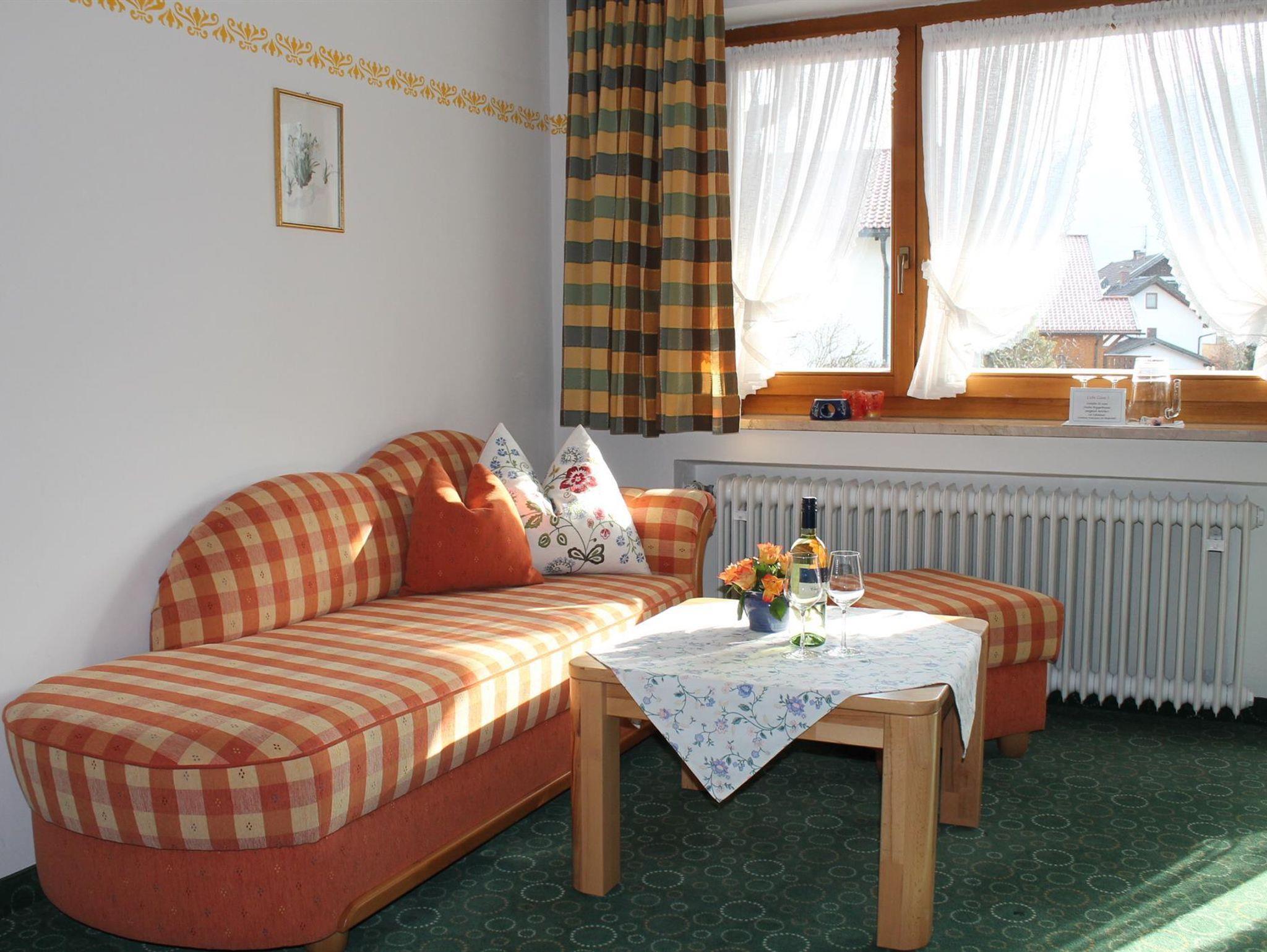 Genießen Sie den herrlichen Bergblick auf unser wunderschönes Karwendel- und Wettersteingebirge von dem Südbalkon Ihrer gemütlichen Ferienwohnung mit 30m². Wohn-Schlafzimmer mit Schrankbetten (normale Betten, tagsüber im Schrank, brauchen abends nur ausgeklappt werden), bequeme Sitzgruppe und Essecke, SAT-TV, Radio, Telefon; sep. Küche mit Kochplatten, Mikrowelle auf Wunsch, Kühlschrank mit Gefrierfach, Kaffeemaschine, Wasserkocher und kompl. Geschirr; Dusche/ WC, Fön; Balkon mit Sonnenschirm und Gartenmöbeln; Bettwäsche, Handtücher, Tischdecken und Geschirrtücher vorhanden