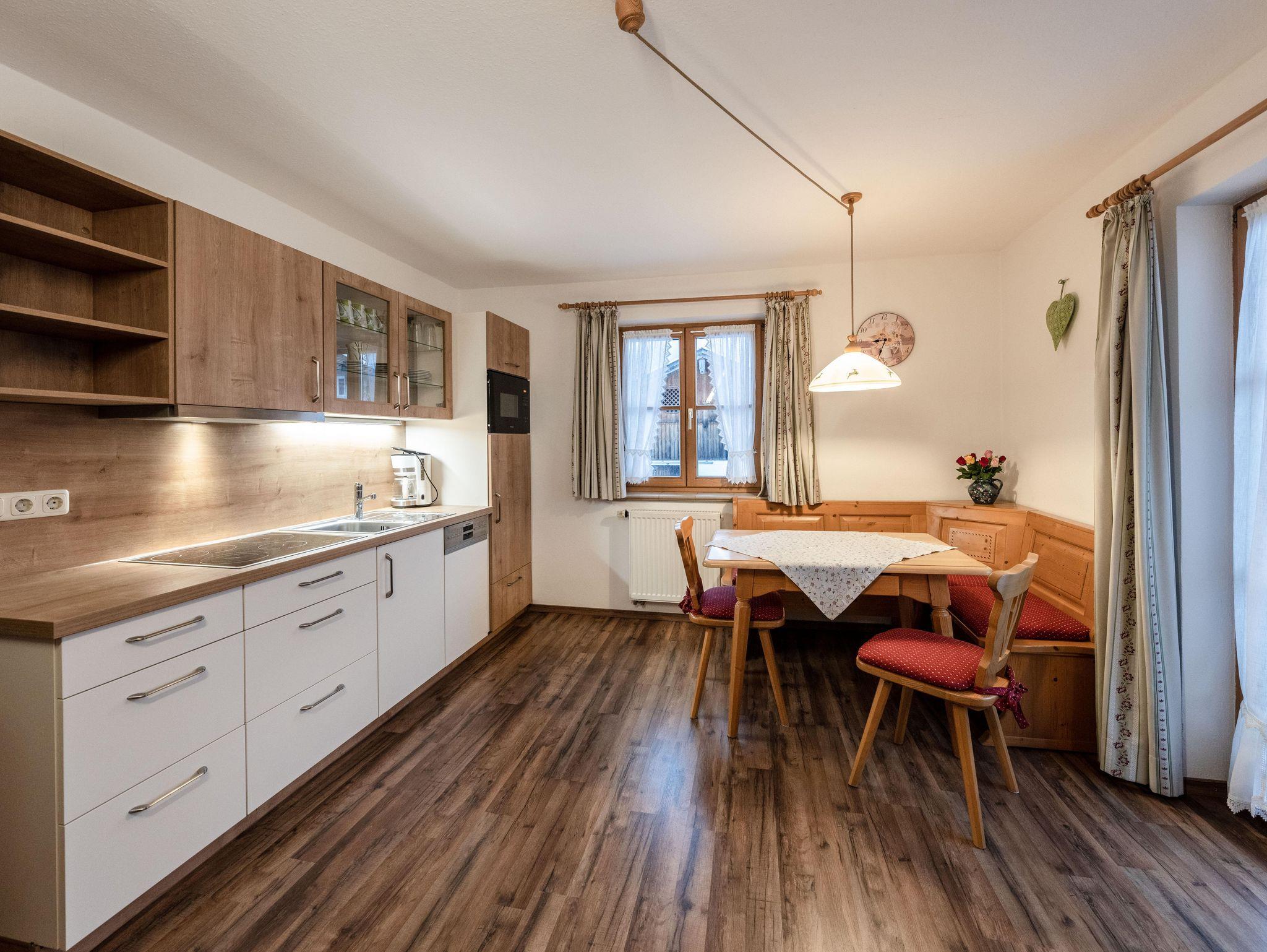 Die Wohnküche ist ausgestattet mit einer Küchenzeile neu, 4-Platten-Cerankochfeld, Mikrowelle, Geschirrspüler. Gemütlicher bayerischer Eckbank, Couchecke mit Flachbildschirm, Kabel-TV, CD-Player, Radio. Das Bad mit 2 Waschbecken und Dusche/WC.