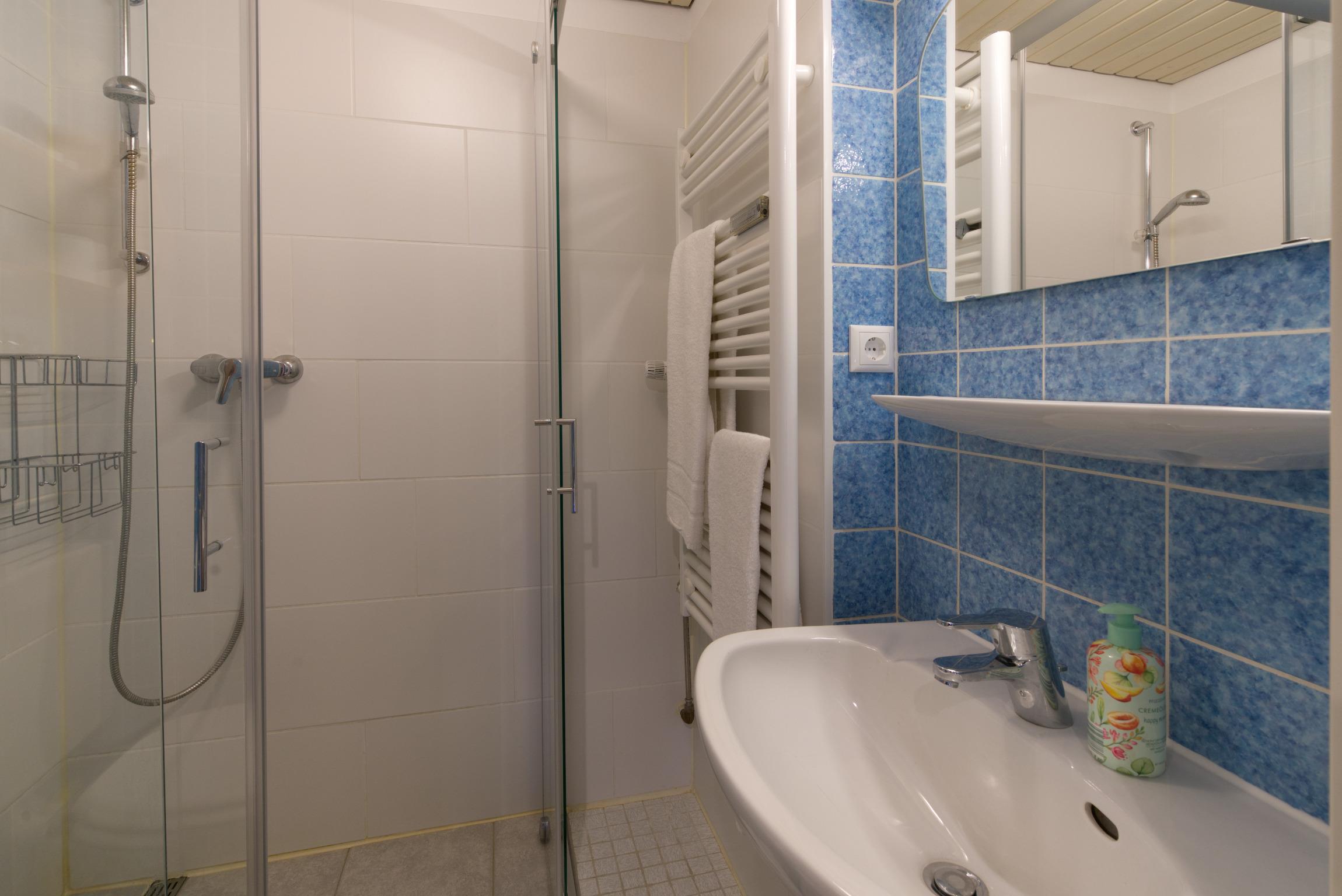 Das Bad verfügt über eine Dusche/WC.