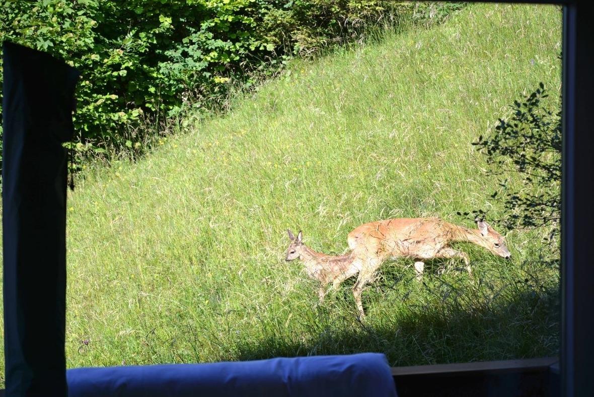 Hier können Sie je nach Jahreszeit die Rehe ganz in der Nähe des Hauses beobachten.