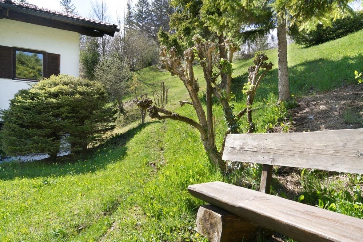 Einzigartig: Der große Wohnbereich mit Panoramafenster zum Karwendel. Und davor der terrassenartige Balkon. Der Blick schweift über den gesamten Ort und steht dem Ausblick einer Berghütte in nichts nach.