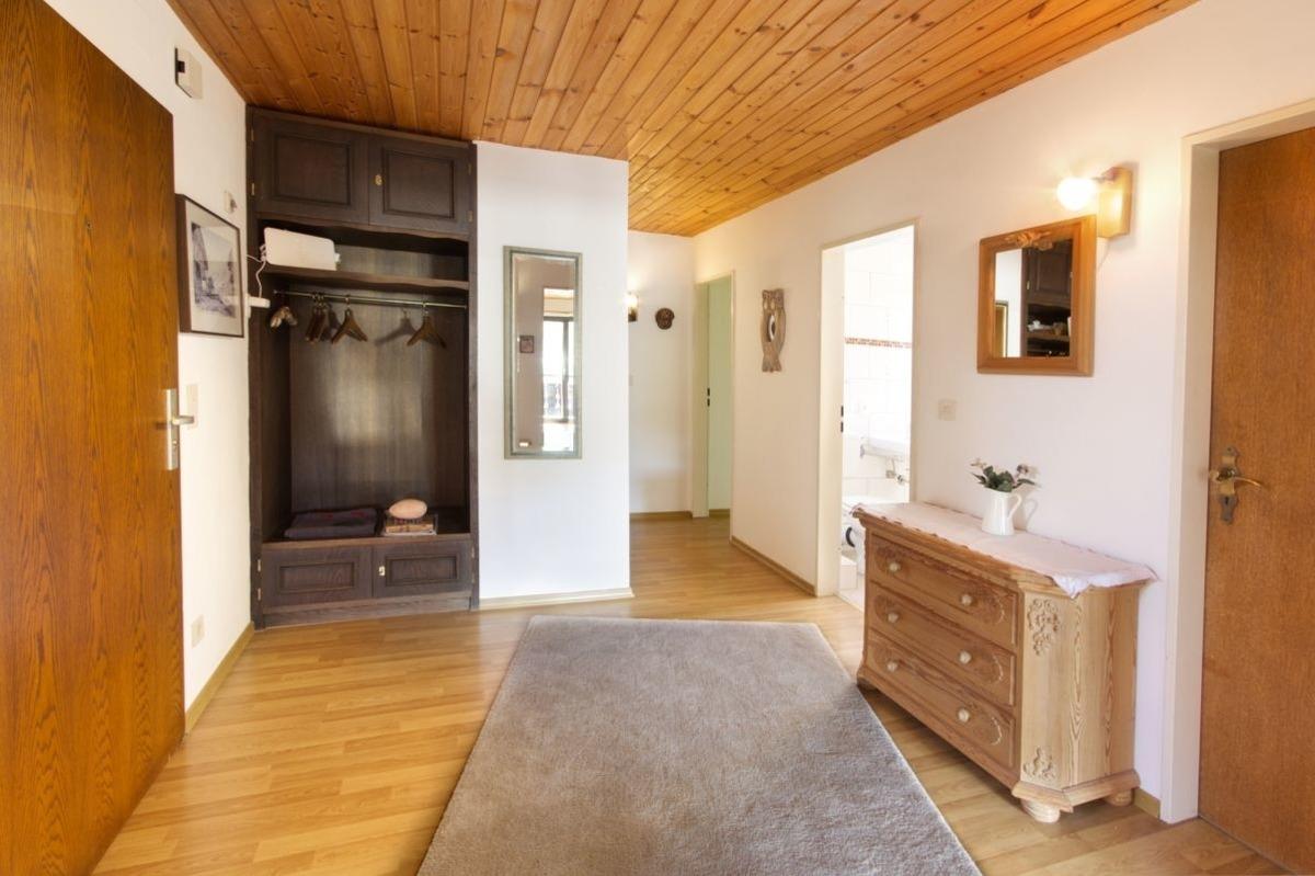 ist ihr geräumiger Stützpunkt für alle Aktivitäten in der Region. Sie besitzt zwei Balkone (Ost- und Westseite) und zwei getrennte Badezimmer. Somit können auch zwei befreundete Familien Privatsphäre genießen und gemeinsam Küche und Wohnzimmer nutzen. Die komplett eingerichtet Küche ist offen gestaltet und mit einer Durchreiche zum Esstisch zweckmässig verbunden. Drei Schlafzimmer (je eines mit Doppelbett, Stockbett und Ausziehcouch) bieten individuelle Nutzungsmöglichkeiten. Alle Zimmer zweigen vom geräumigen Flur als zentralem Raum in alle Richtungen ab. Ein PKW-Stellplatz gehört mit zur Wohnung.