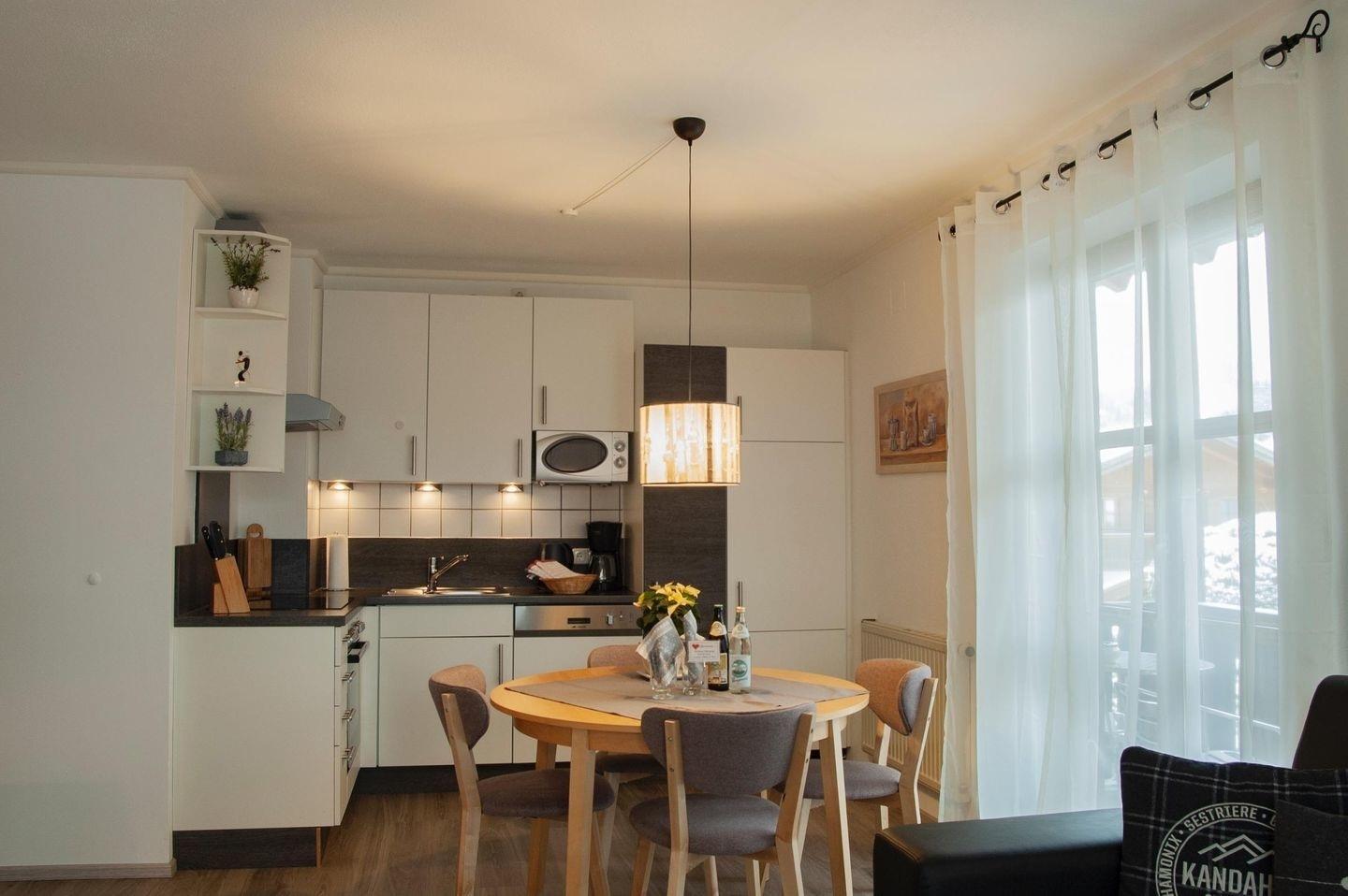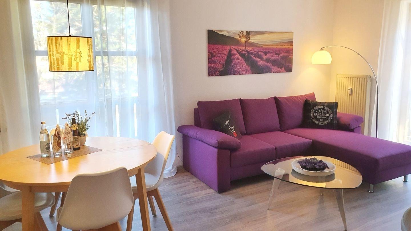 Die helle im alpinen Style ausgestattete 2-Zimmerwohnung "Lavendelstüberl" ***, bietet über zwei Balkone einen herrlichen Ausblick in Richtung Karwendelgebirge.