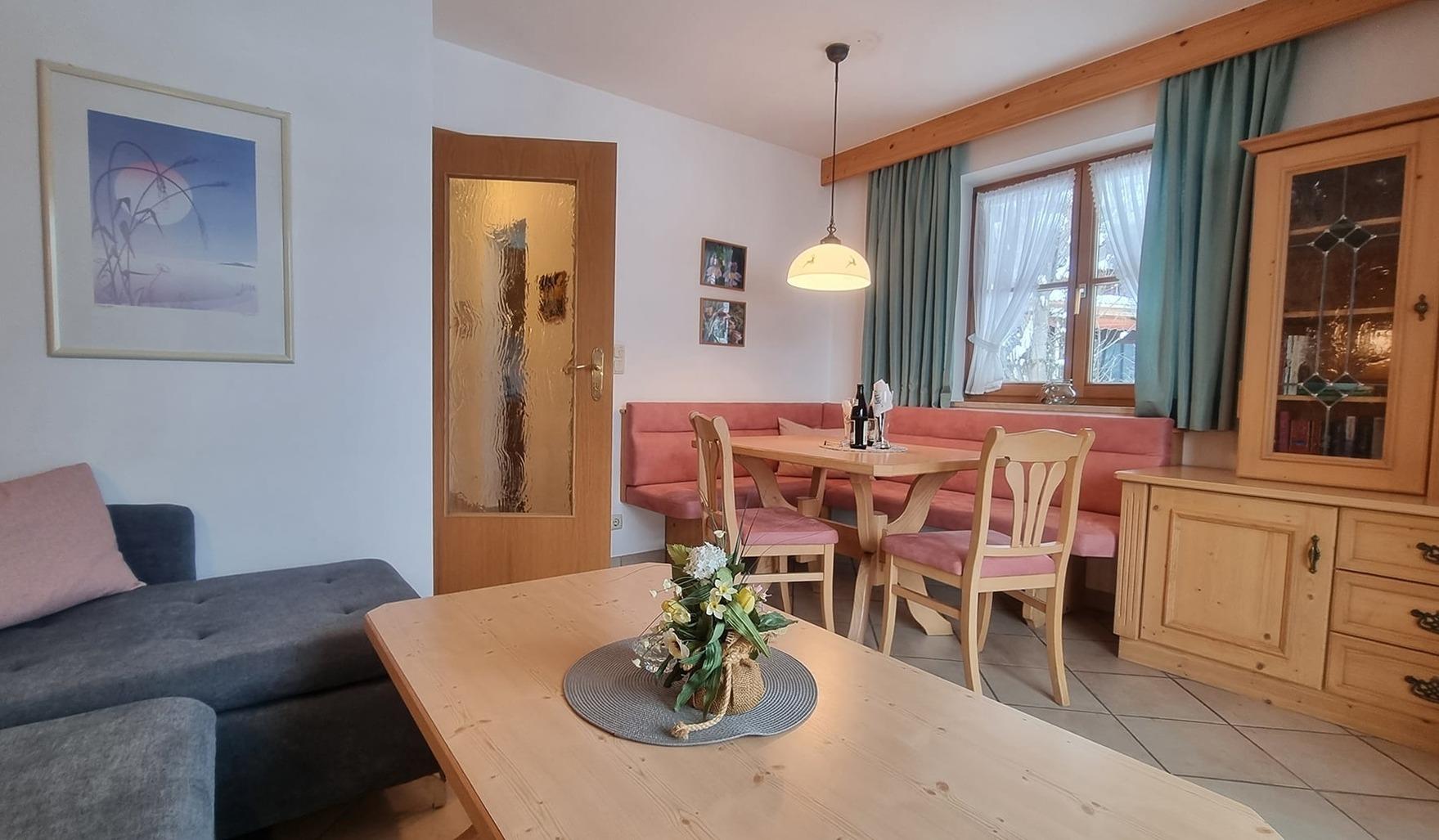 Haus am Kranzberg: Romantisch und ruhig gelegenes Landhaus etwas oberhalb von Mittenwald mit herrlichem Blick über den Ort und Richtung Karwendelgebirge. Die Wanderwege zum Kranzberg beginnen am Haus und im Winter ist das Skigebiet Mittenwald - Kranzberg (Luttensee) schnell erreicht. Die Wohnungen sind hochwertig vom Schreinermeister eingerichtet.