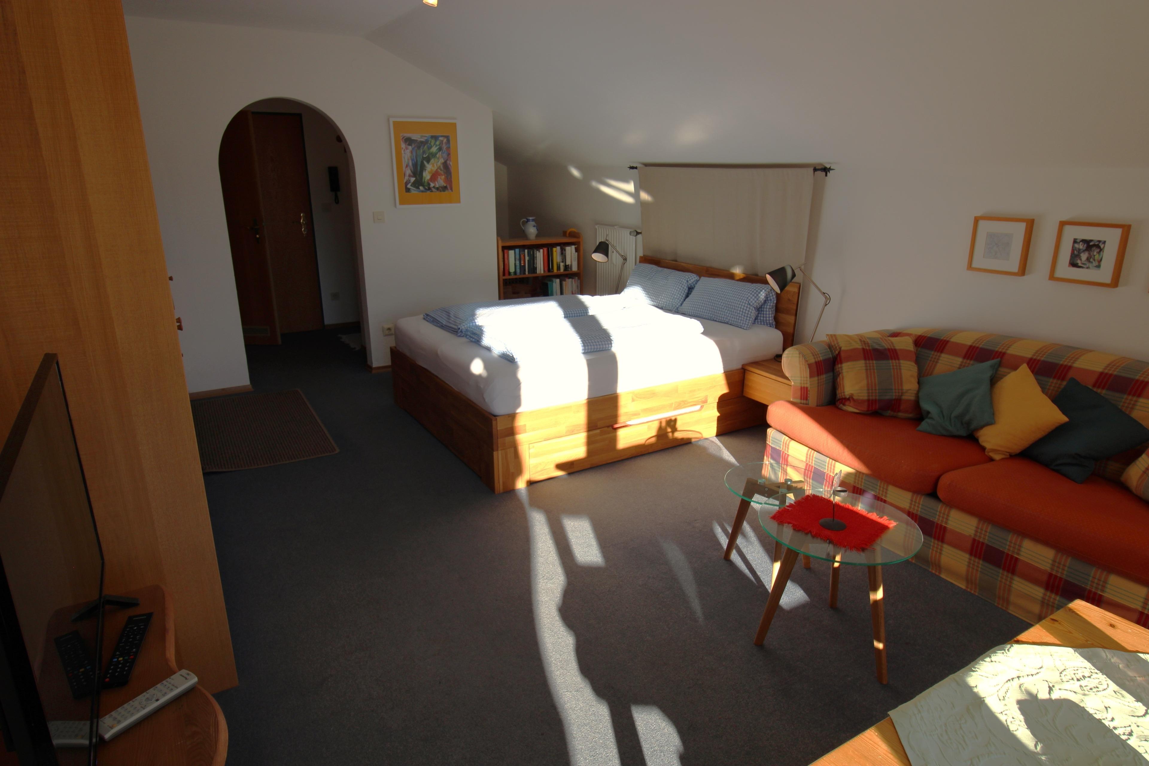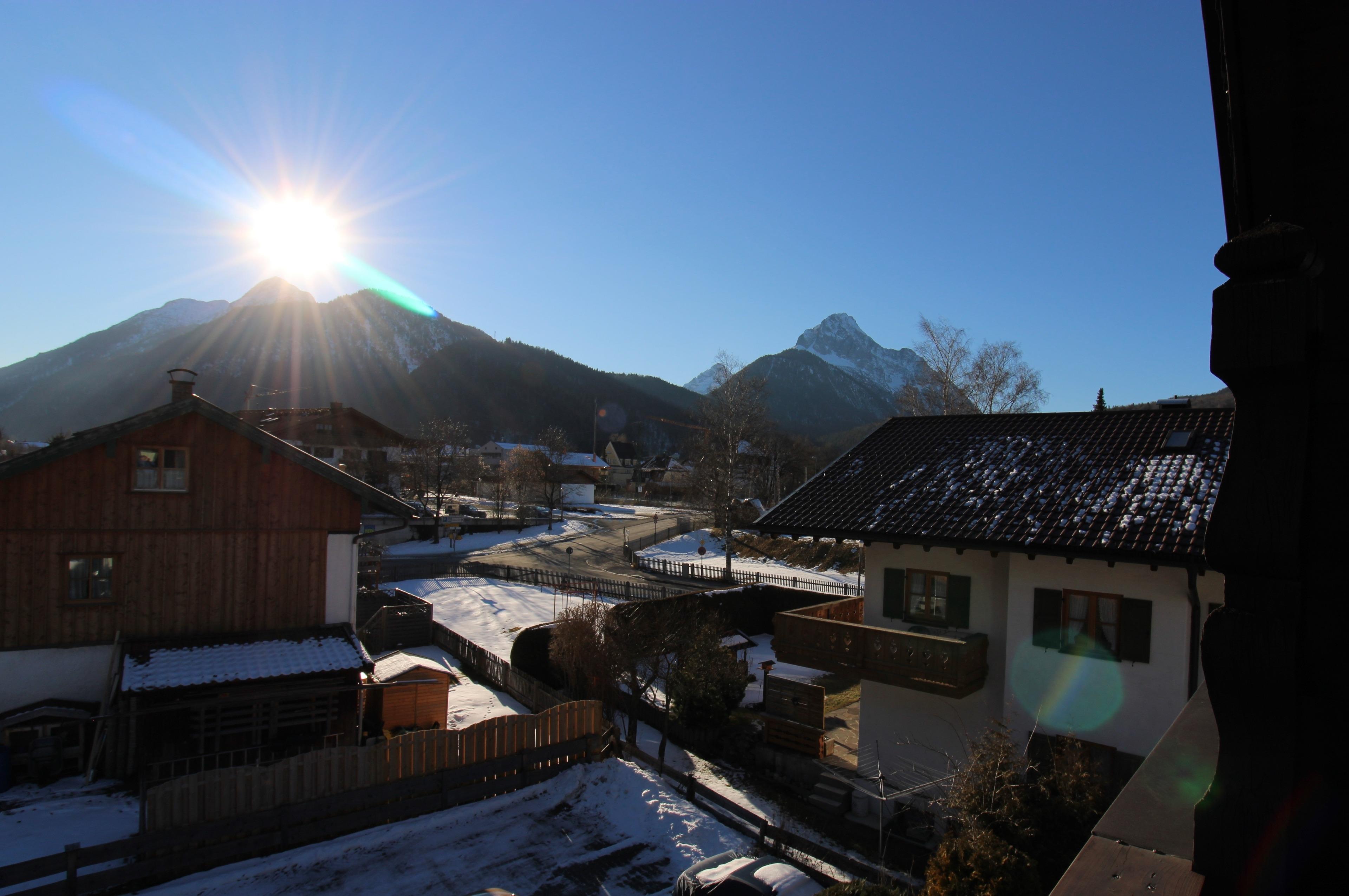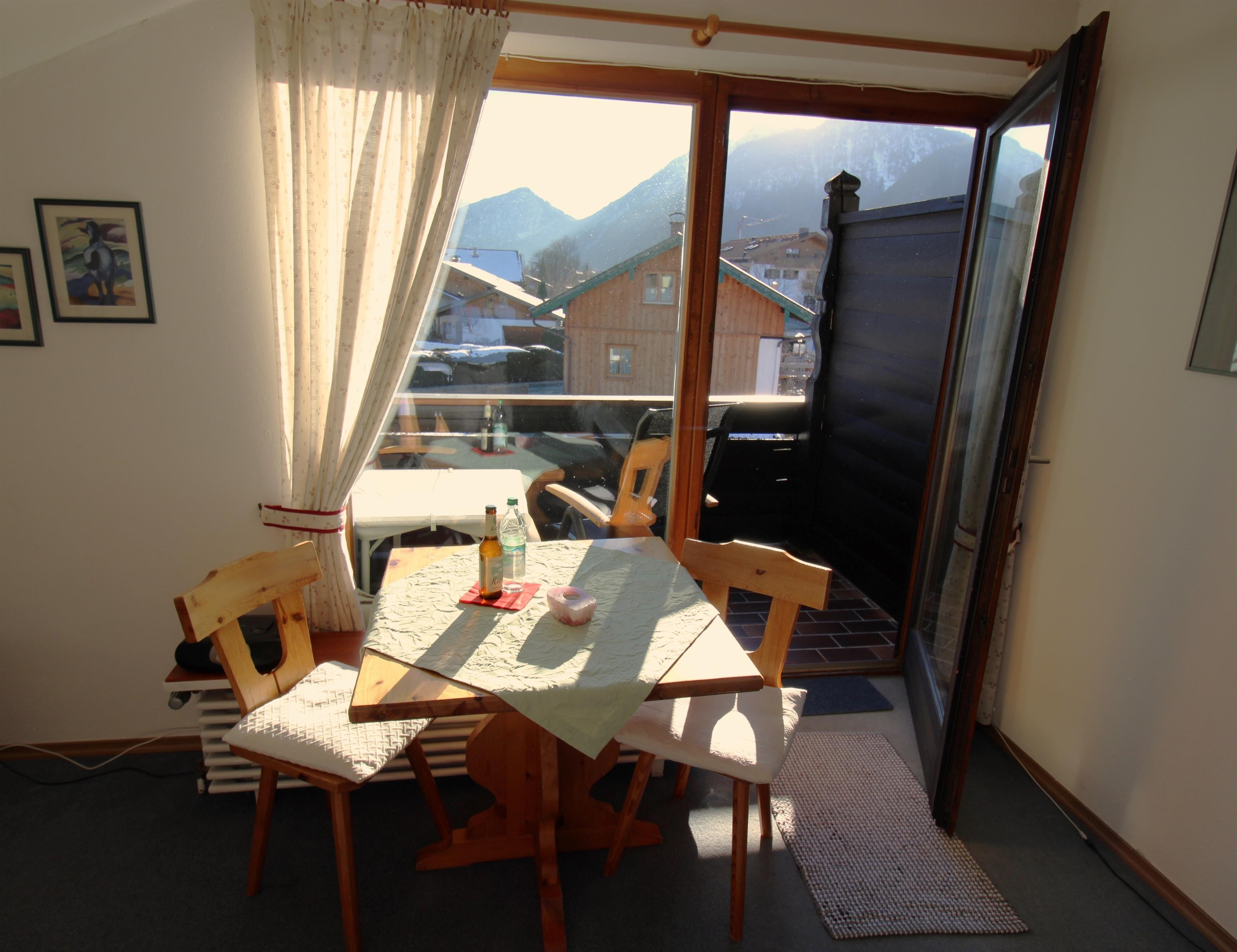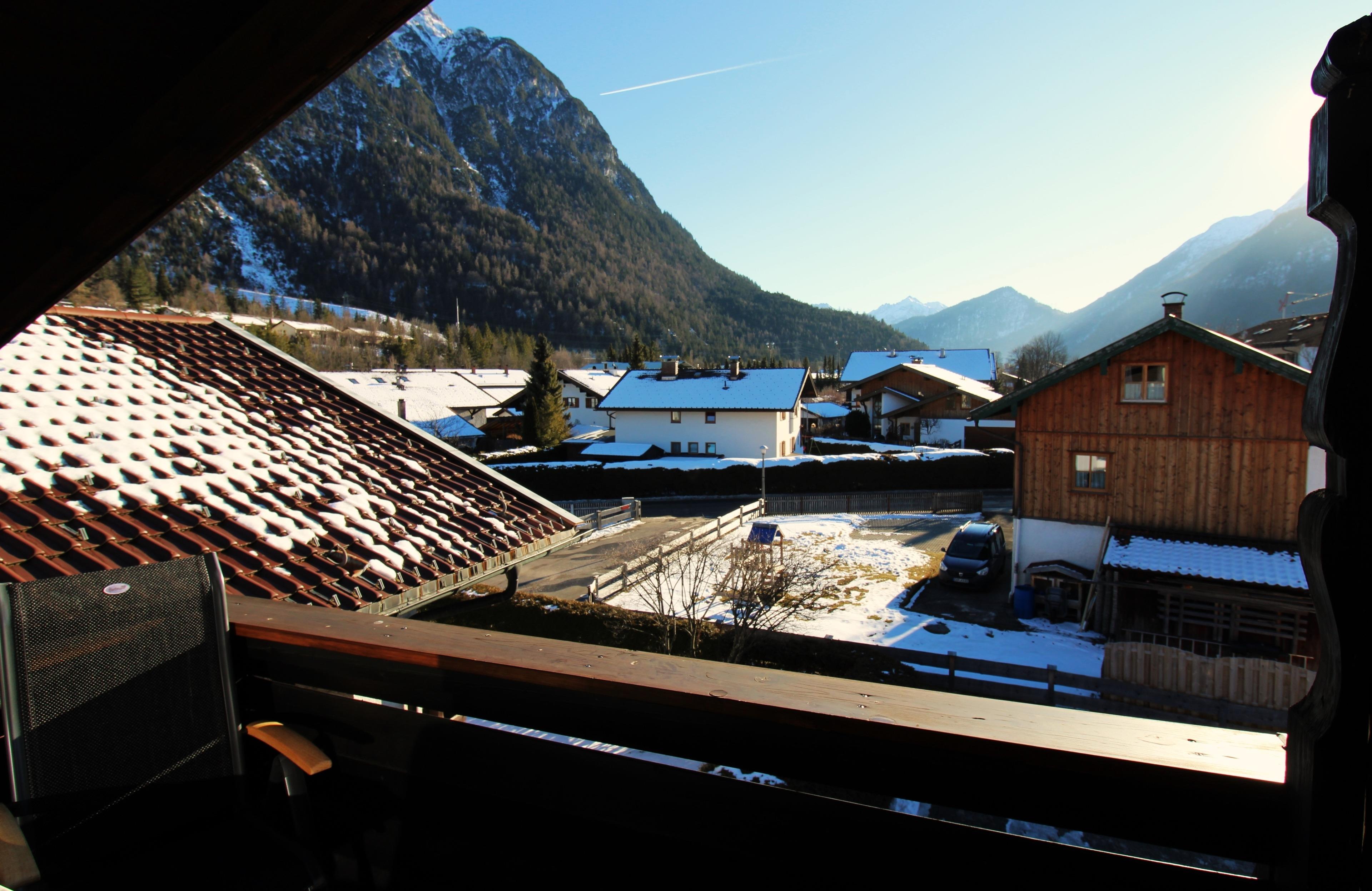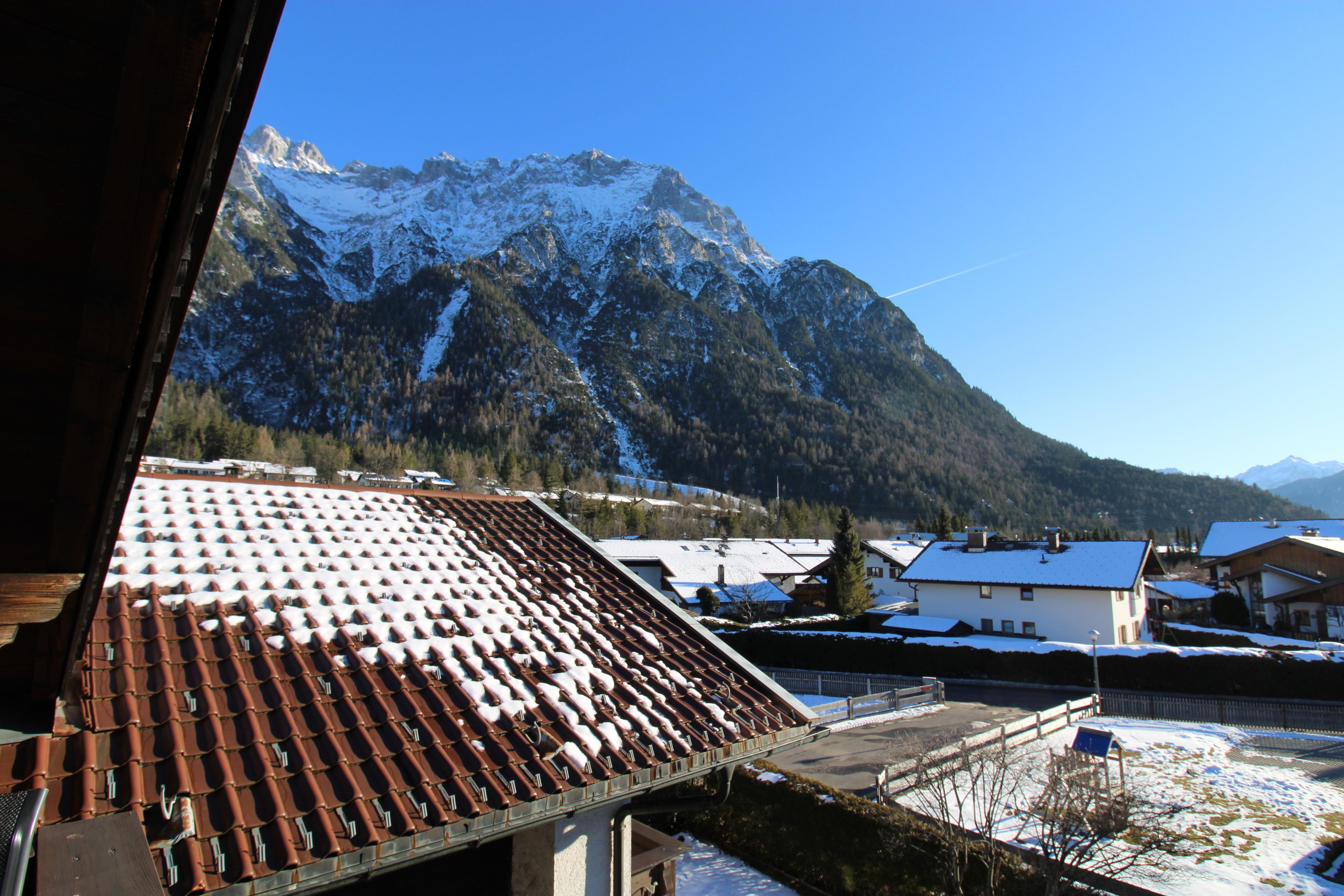 Gemütliches Dachgeschoss-Appartement mit wunderbarem Ausblick auf das Karwendel-und Wettersteingebirge. Südbalkon, ca. 3 Gehminuten vom Bahnhof entfernt in zentraler Lage.