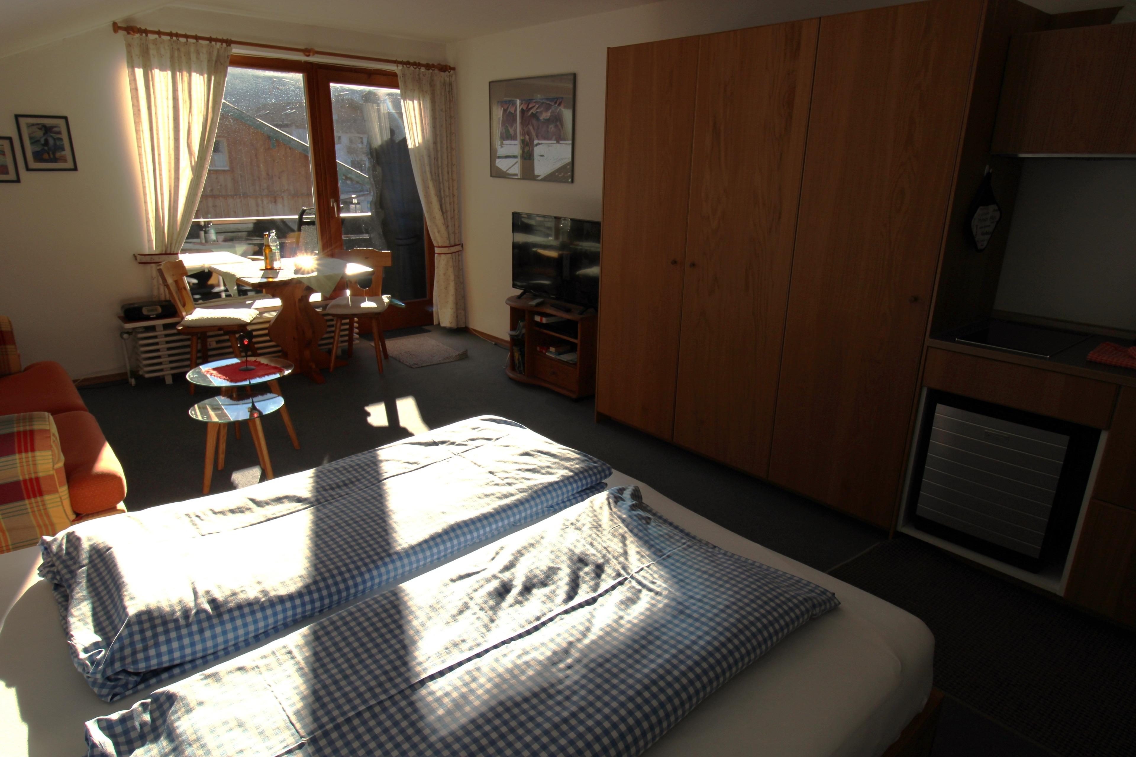 Die Ferienwohnung Blüm ist Ihr gemütlicher Ausgangspunkt in Mittenwald und für alle Unternehmungen geeignet. Das Appartement ist mit kombiniertem Wohn-/Schlafraum gemütlich eingerichtet und in der Kitchenette können Sie ihr Frühstück und kleinere Speisen selbst zubereiten. Eine DU/WC, sowie ein offener Vorraum komplettieren das Angebot. Highlights sind die zentrumsnahe Lage, wodurch Sie in der Lage sind, die täglichen Einkäufe zu Fuss zu erledigen und der Südbalkon mit herrlichem Blick auf das Karwendel- und Wettersteingebirge. Ein PKW-Stellplatz befindet sich am Haus.