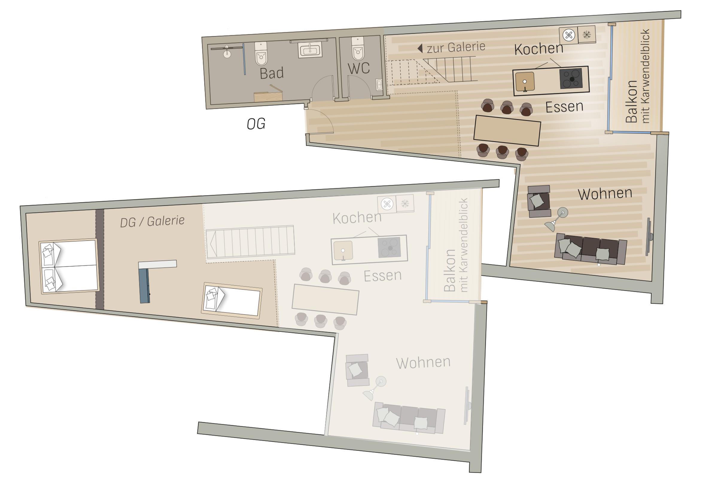 Ein digitales SMART TV mit Flachbildschirm, sowie WLAN sind selbstverständlich für Sie eingerichtet. Die hochwertige Küchenzeile ist mit Geschirrspüler, Backofen, Kühlschrank mit Gefrierfach, Induktionskochfeld und Bora-Dunstabzug komplett ausgestattet. Das moderne Badezimmer verfügt über eine ebenerdige Dusche mit Glastrennwand und ein WC. Ein zusätzliches Gäste-WC wartet ebenfalls auf Sie. Über eine geradlinige Treppe erreichen Sie die Galerie (24qm). Ein großzügiger Kleiderschrank, sowie das Boxspringbett, eingearbeitet in die historische Balkenkonstruktion ergänzen das Angebot. Bitte beachten Sie, dass Sie über einen Balken in Kniehöhe steigen müssen, um ins Bett zu gelangen. Zusätzlich kann ein Sofa genutzt werden, das ebenfalls als Schlafplatz dienen kann. Dachflächenfenster (zum Teil elektrisch gesteuert) ermöglichen eine helle Lichtsituation.